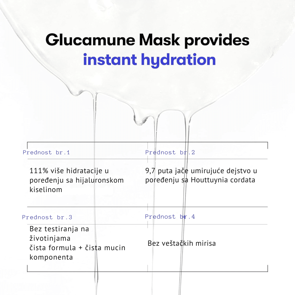 Intenzivna hidratacija i umirenje kože uz masku obogaćenu Glucamune kompleksom, pantenolom i skvalanom za zaštitu i obnovu kožne barijere.