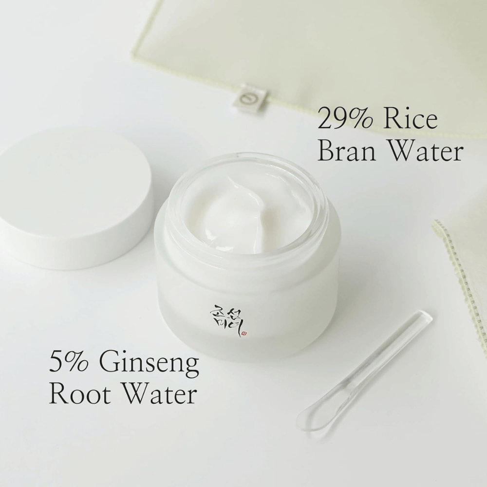 Beauty of Joseon Dynasty Cream 50ml je luksuzna krema inspirisana korejskom tradicijom, koja kombinuje Ginseng i Pirinčane klice kako bi koži pružila dubinsku hidrataciju, regeneraciju i zaštitu. Ginseng poboljšava cirkulaciju i tonus kože, smanjuje fine linije i bore, stimuliše proizvodnju kolage što rezultira mladalačkim sjajem. Pirinčane klice kao još jedan glavni sastojak su bogate aminokiselinama, mineralima i vitaminom E, pomaže u čišćenju kože, posvetljavanju i izjednačavanju tena. Formula je dodatno obogaćena niacinamidom i skvalanom, te obezbedjuje potrebnu hidrataciju i revitalizaciju, smanjujući znakove starenja i vraćajući joj prirodnu elastičnost. Krema se brzo upija, ne ostavljajući masni trag, i ostavlja kožu glatkom, hidratizovanom i svežom. Idealna je za zrelu kožu, kožu sklonu suvoći i one koji žele da poboljšaju teksturu i tonus kože. Formulacija je bez parabena, veštačkih boja i mirisa.