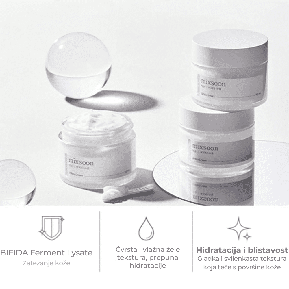 Mixsoon Bifida Cream 60ml je regenerativna hidratantna krema formulisana sa bifida ferment lysate-om, poznatim po sposobnosti obnavljanja i jačanja kožne barijere. Ova bogata, ali lagana krema dubinski hidrira, smiruje iritacije i smanjuje crvenilo, dok pomaže u vraćanju elastičnosti i blistavosti kože. Dodatni sastojci poput ceramida i pantenola osiguravaju intenzivnu hidrataciju i glatkoću kože.