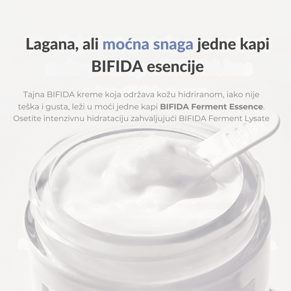 Bifida Ferment je probiotički sastojak dobijen fermentacijom bakterija Bifidobacterium, poznat po svojoj sposobnosti da jača zaštitnu barijeru kože, hidrira i štiti kožu od štetnih spoljašnjih faktora. Ovaj ferment poboljšava otpornost kože, smanjuje osetljivost i pomaže u njenoj regeneraciji. Takođe, deluje kao antioksidans, štiteći kožu od preranog starenja uzrokovanog UV zračenjem i zagađenjem. Zbog svojih umirujućih i hidratantnih svojstava, često se koristi u esencijama, serumima i kremama namenjenim suvoj, osetljivoj i iritiranoj koži.