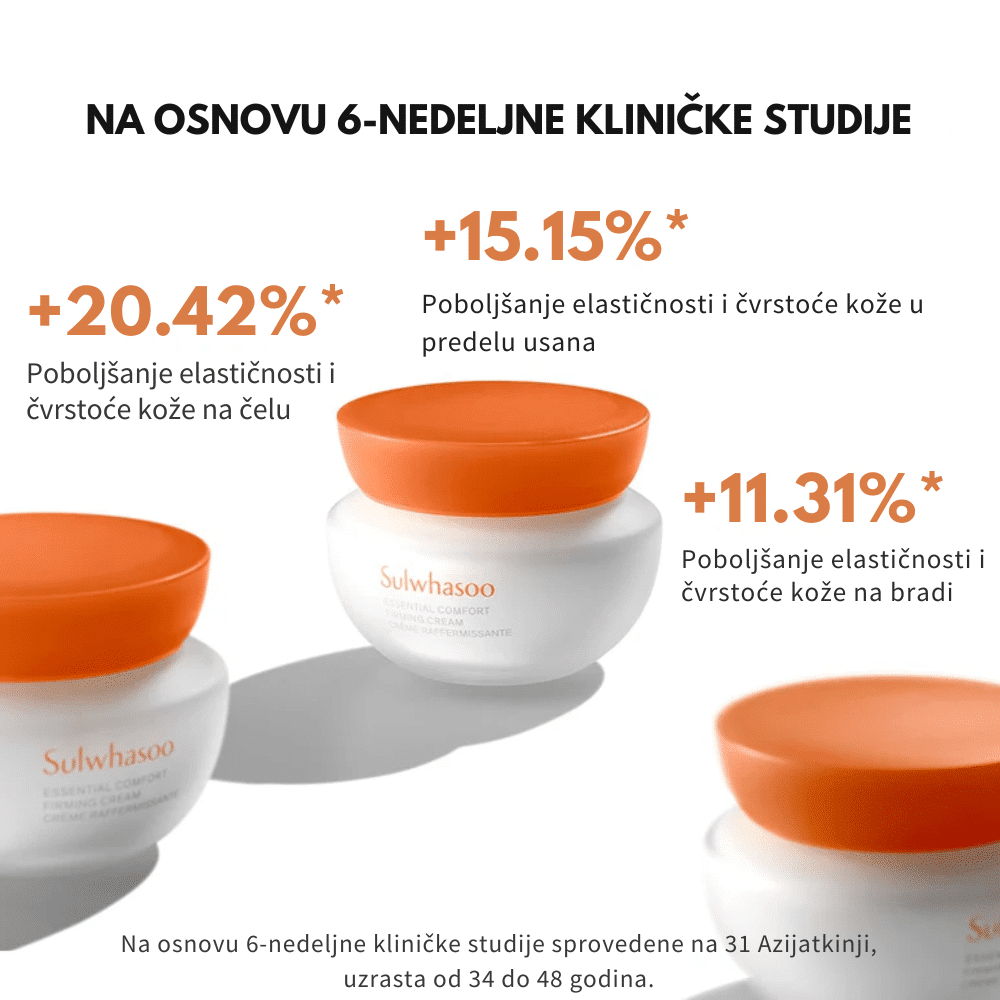 Sulwhasoo Essential Comfort Firming Cream Mini je hipoalergena, bogata hidratantna krema koja poboljšava čvrstinu kože i njen izgled elastičnosti, pružajući koži mekoću i elastičnost. Formulirana sa Sulwhasoo JISUN Firming Complex™ i JAUM Moisturizing Complex™, ova krema pomaže u obnavljanju i jačanju barijere kože, smanjujući pojavu finih linija i bora. Njena lagana, ali bogata tekstura brzo se upija, ostavljajući kožu glatkom i revitalizovanom. Mini pakovanje od 15 ml je idealno za putovanja ili kao uvod u luksuznu rutinu nege kože.