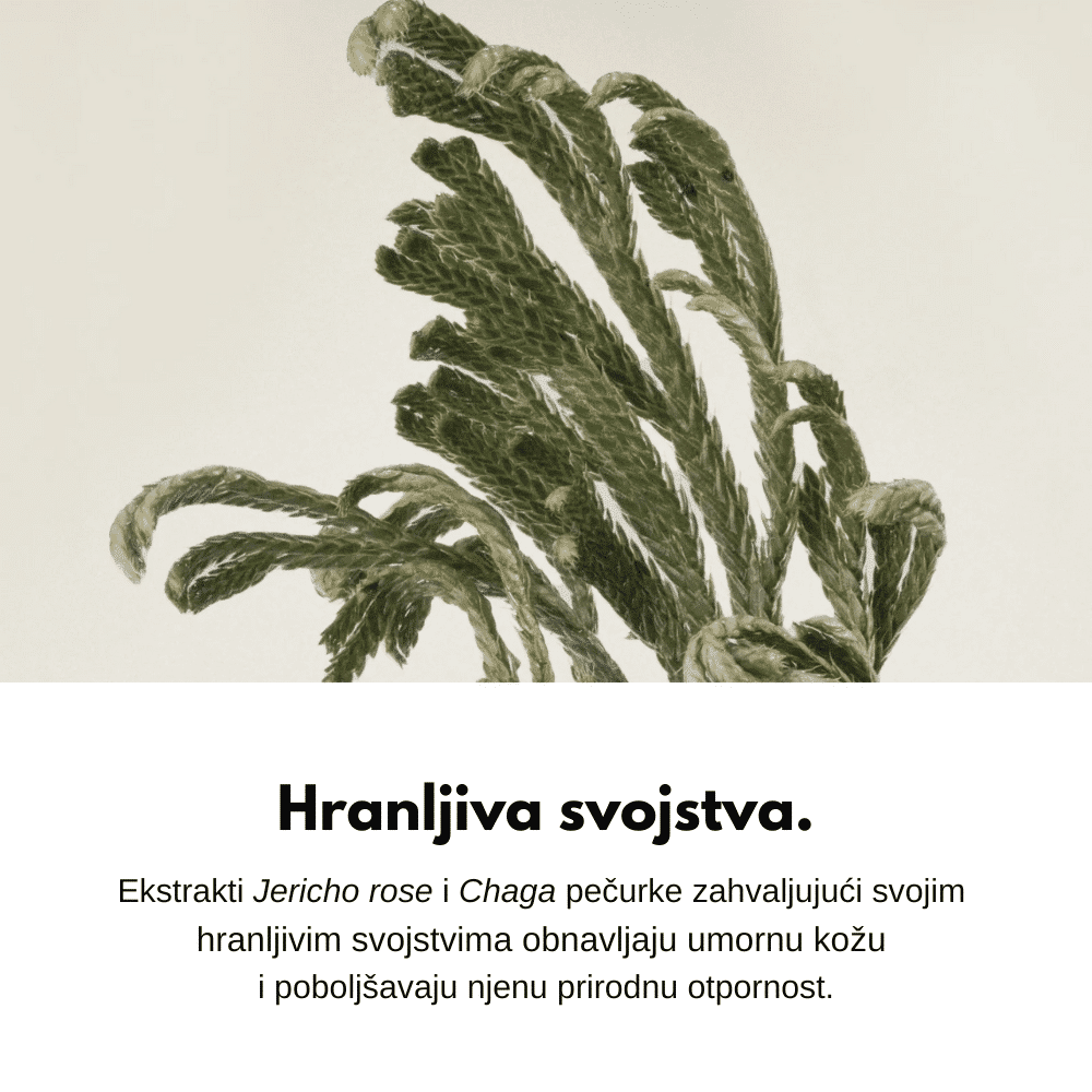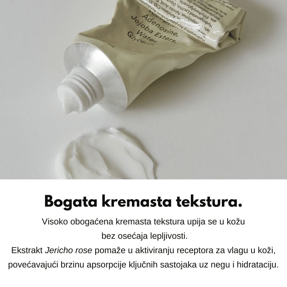 Hranljiva krema sa Jericho Rose ekstraktom pruža dubinsku hidrataciju, obnavlja elastičnost i čini kožu mekom i glatkom.