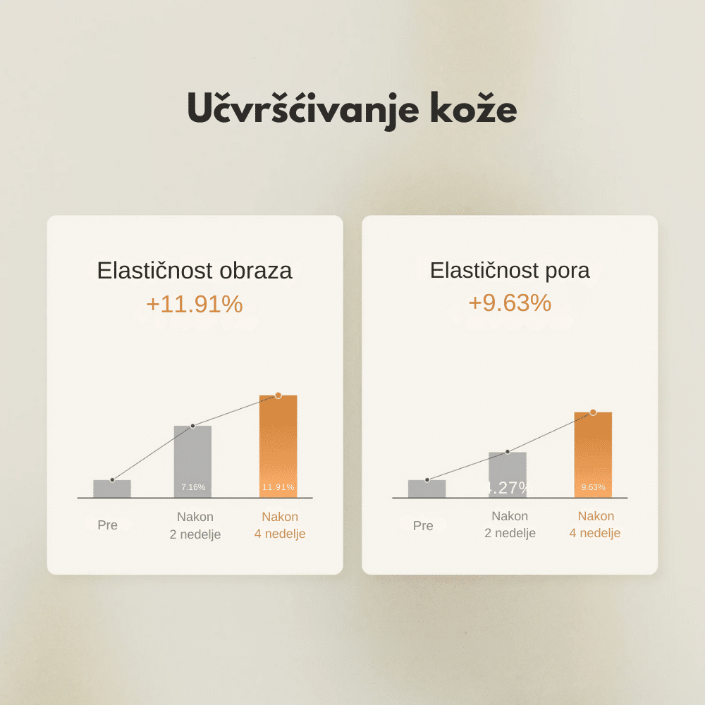 Proizvod je prošao klinička ispitivanja koja su pokazala poboljšanje elastičnosti kože za 7,16% nakon 2 nedelje i 11,91% nakon 4 nedelje korišćenja. Proizvod je formulisan bez parabena, sulfata i alkohola.