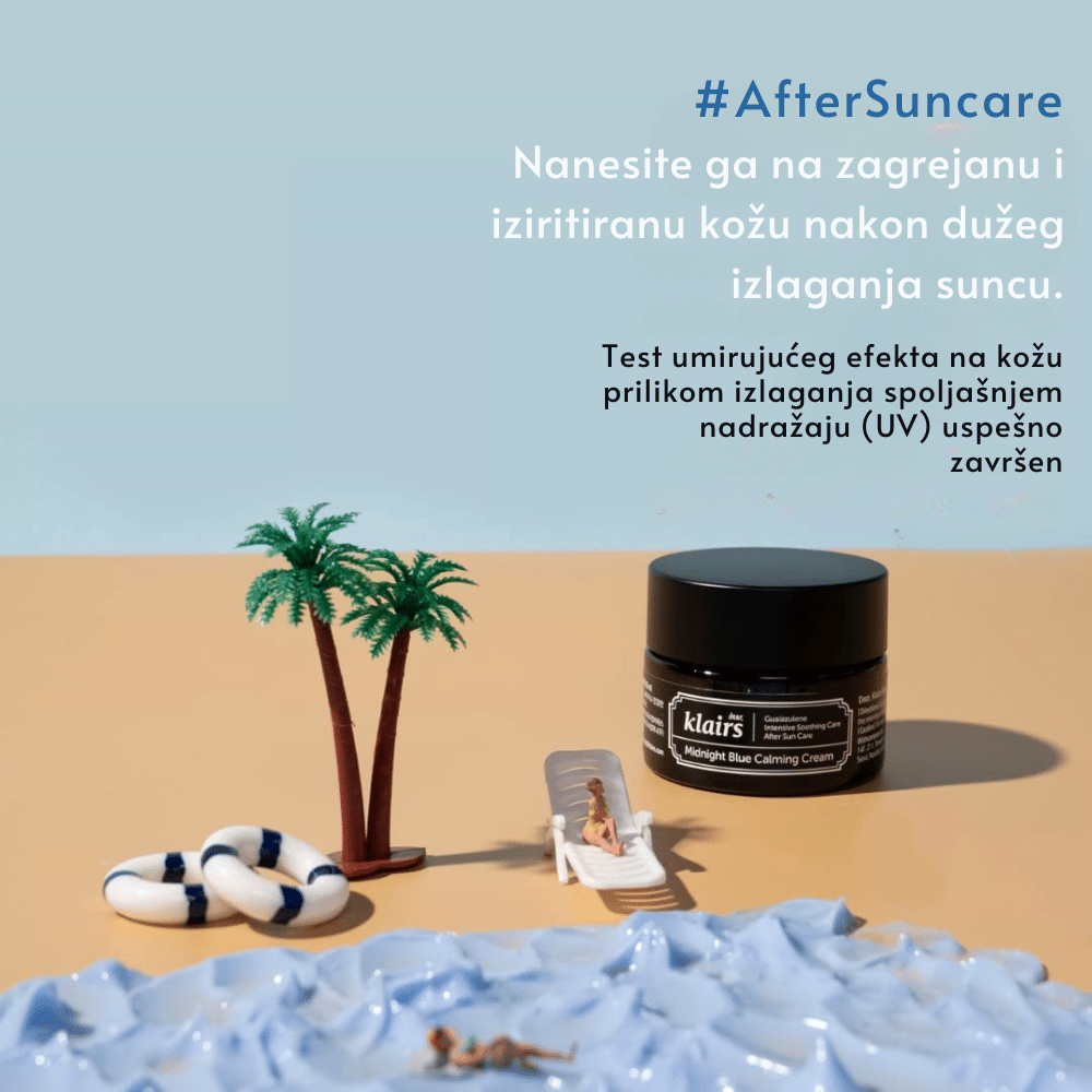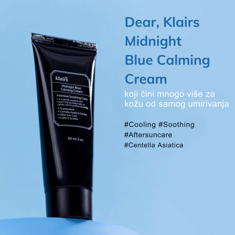 Dear, Klairs Midnight Blue Calming Cream je umirujuća krema posebno formulisana za trenutnu pomoć osetljivoj, iritiranoj i upaljenoj koži. Njena lagana, ali bogata formula pruža intenzivnu hidrataciju, smanjuje crvenilo i obnavlja zaštitnu barijeru kože. Idealan je izbor za kožu koja je izložena spoljašnjim agresorima poput sunca, vetra, zagađenja ili kozmetičkih tretmana poput hemijskih pilinga i lasera.