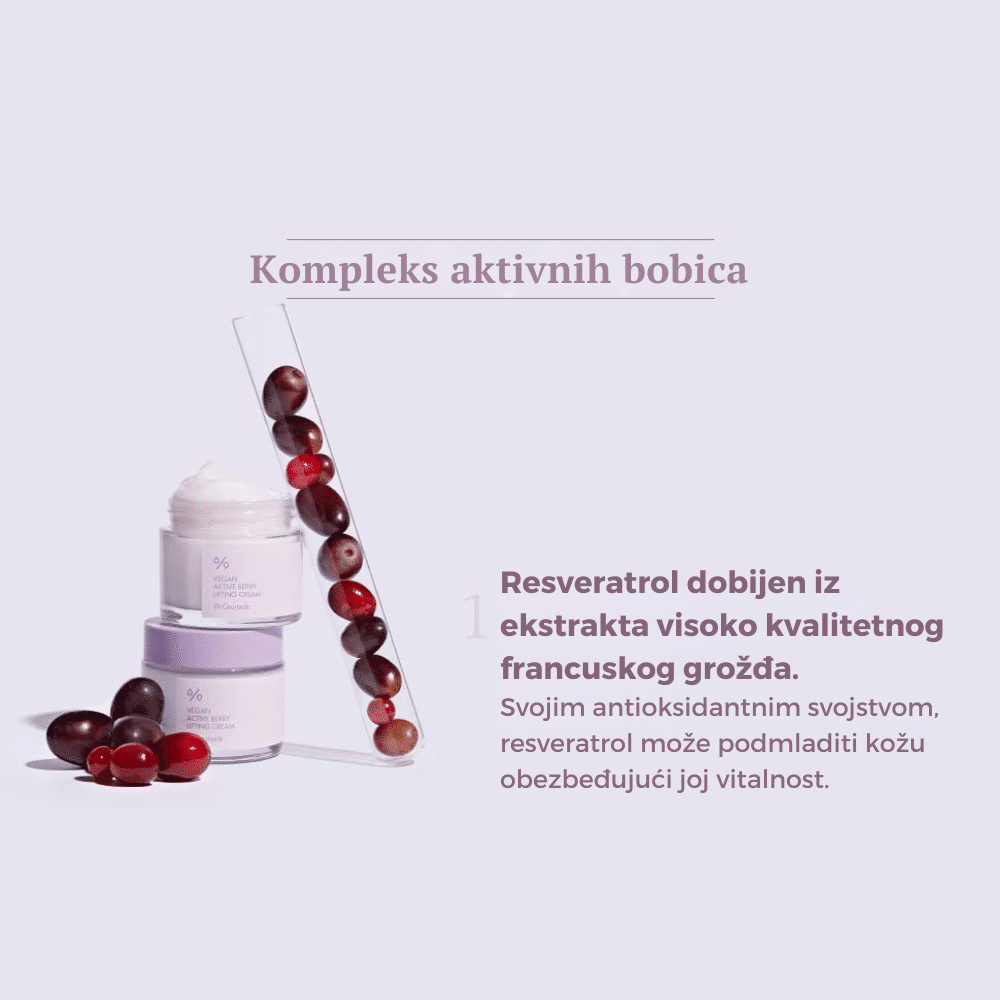 Lifting krema sa aktivnim bobicama i hijaluronskom kiselinom koja zateže kožu, smanjuje fine linije, poboljšava elastičnost i pruža koži blistav izgled.