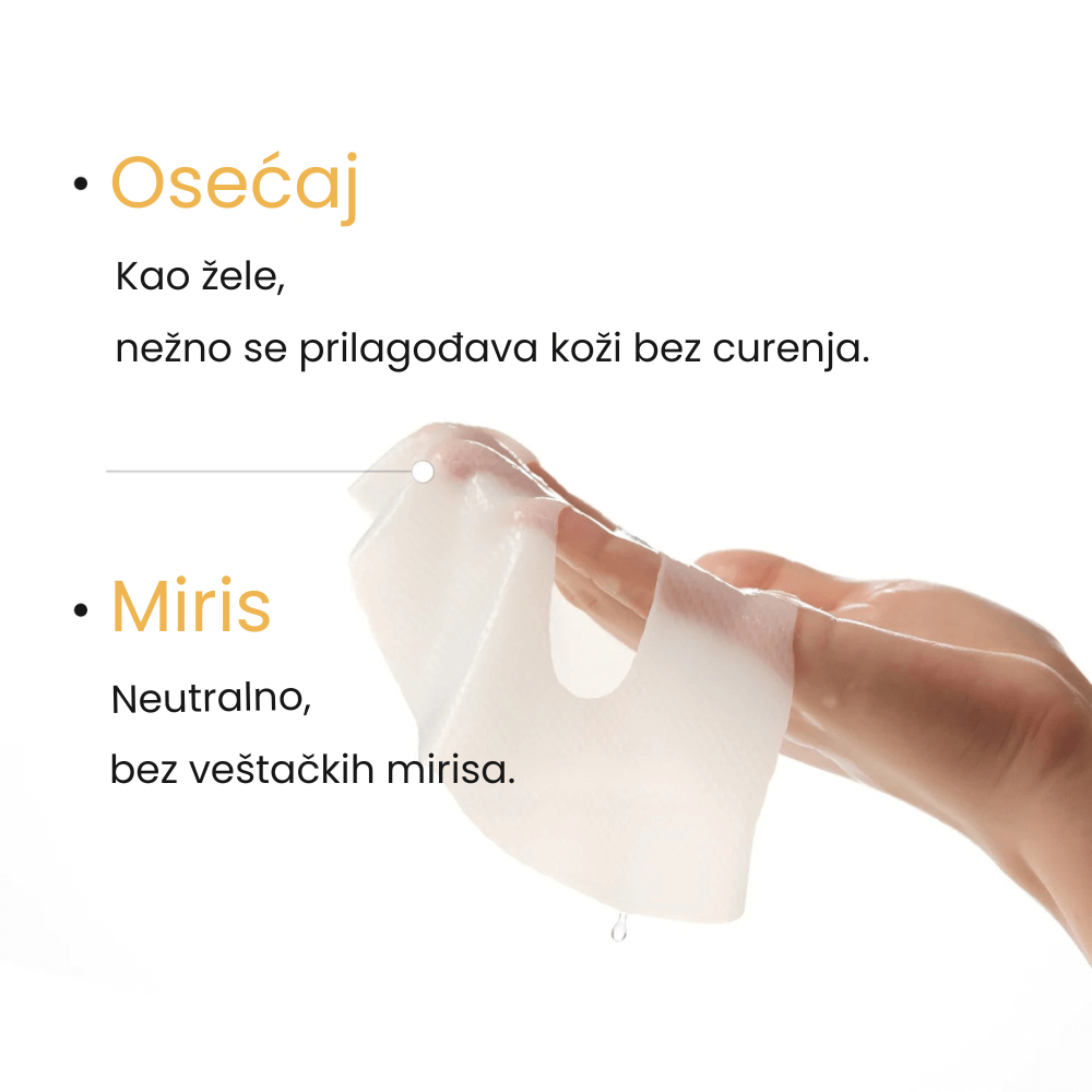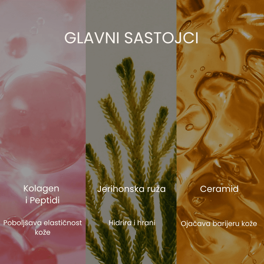 Hidrogel maska sa fermentisanim kolagenom i ekstraktom Jerihonske ruže koja hidrira, revitalizuje i poboljšava elastičnost kože, pružajući blistav i mladalački izgled.