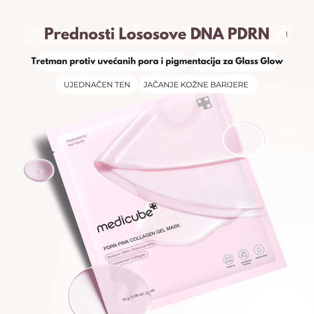 Medicube PDRN Pink Collagen Gel Mask je visokoefikasna gel maska koja pruža dubinsku hidrataciju, regeneraciju i učvršćivanje kože zahvaljujući kombinaciji PDRN-a i kolagena. PDRN (polideoksiribonukleotid) dobijen iz lososa obnavlja oštećenu kožu i poboljšava njenu elastičnost, dok kolagen hidrira i smanjuje pojavu finih linija. Obogaćena antioksidansima i umirujućim sastojcima, maska pomaže u smanjenju crvenila i umirivanju iritacija. Njena gel tekstura pruža osvežavajući efekat i savršeno prianja uz lice, omogućavajući duboku penetraciju aktivnih sastojaka. Maska pruža efekat hlađenja smanjujući temperaturu kože za 7,9°C, što doprinosi osveženju i umirenju kože. Proizvod je dermatološki testiran i pokazao je poboljšanje elastičnosti kože za 2,5% nakon upotrebe.