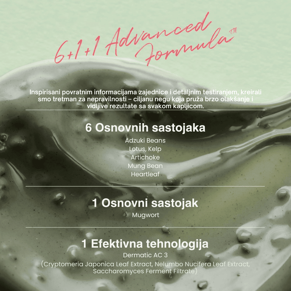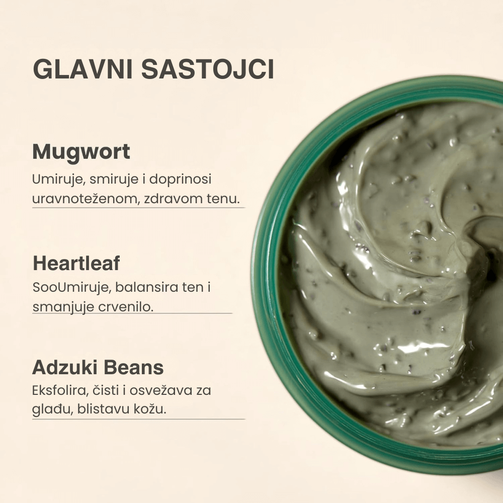Maska sa 61% ekstrakta pelina koja dubinski čisti pore, umiruje iritacije i pruža blagi piling za osveženu i glatku kožu.