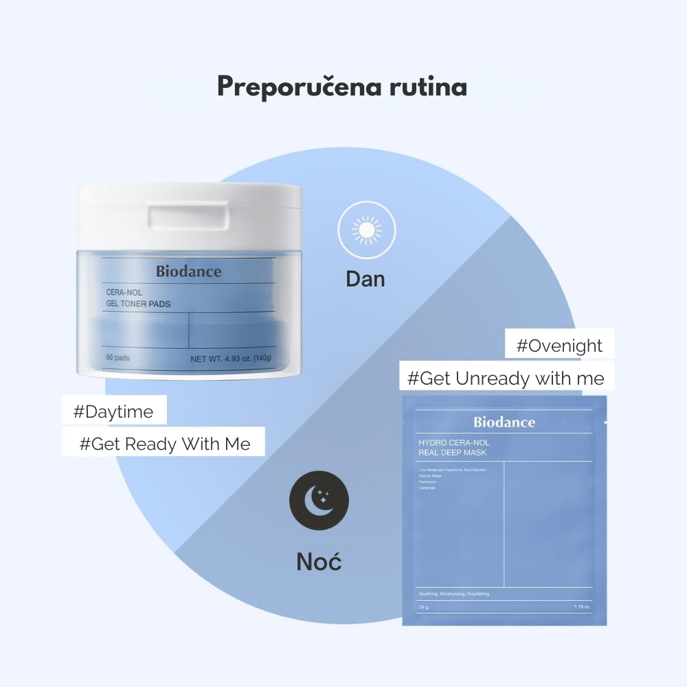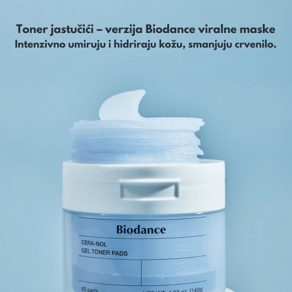 Za razliku od standardnih toner jastučića, Biodance Cera-nol Gel Toner Pads imaju gustu, gelastu formulu koja omogućava postepeno otpuštanje vlage i aktivnih sastojaka u kožu. Ovi jastučići su obogaćeni 10% glečerske vode, koja dodatno poboljšava hidrataciju i osvežava kožu. 5-slojni ceramidi pomažu u ojačavanju kožne barijere, štiteći je od spoljašnjih agresora i gubitka vlage. 10-slojevna hijaluronska kiselina prodire u dublje slojeve kože, pružajući dugotrajnu hidrataciju i punoću. D-Panthenol (provitamin B5) dodatno umiruje i regeneriše kožu, čineći je otpornijom i zdravijom.