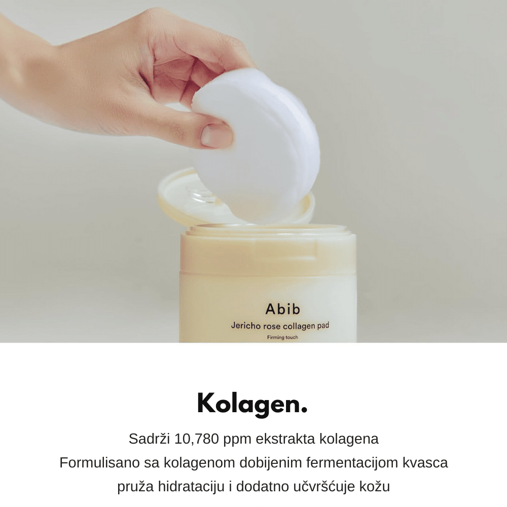 Abib Jericho Rose Collagen Pad Firming Touch je set jastučića za negu kože, obogaćen kolagenom i ekstraktom Jericho Rose.