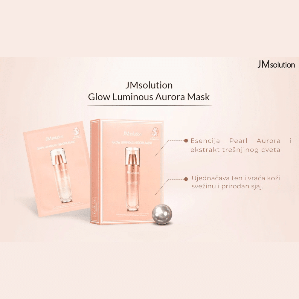 JM Solution Glow Luminous Mask je hranljiva sheet maska dizajnirana da koži pruži dubinsku hidrataciju i blistav, osvežen izgled. Ova maska sadrži moćne sastojke poput hijaluronske kiseline, niacinamida i bisernog ekstrakta, koji zajedno rade na posvetljivanju tena i poboljšanju elastičnosti kože. Formula je obogaćena hidratantnim kompleksom koji pomaže u održavanju vlažnosti tokom celog dana, dok ekstrakti meda i propolisa hrane kožu i poboljšavaju njen tonus. Nakon upotrebe, koža ostaje meka, osvežena i preplavljena zdravim sjajem.