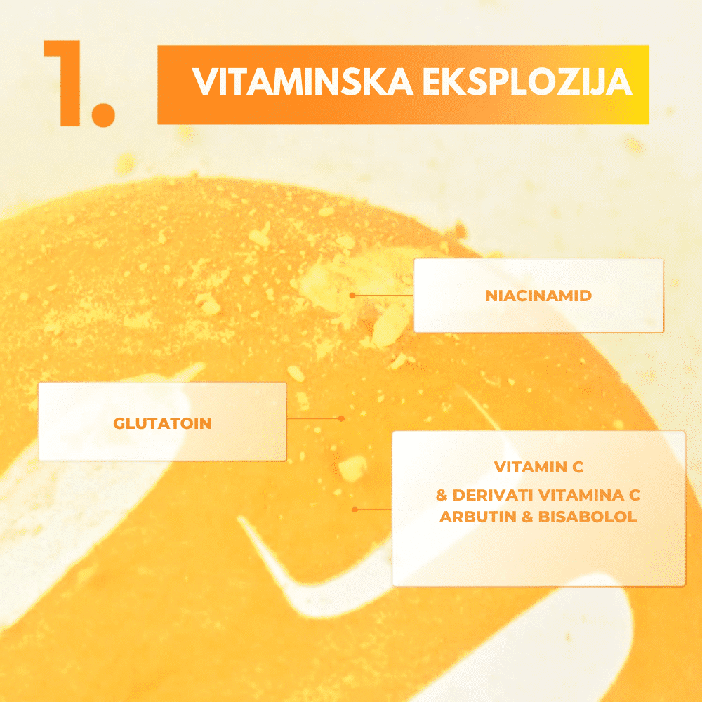 Sheet maska sa vitaminom C koja posvetljuje, hidrira i revitalizuje kožu, smanjuje tamne mrlje i ujednačava ten, ostavljajući je blistavom i osveženom.