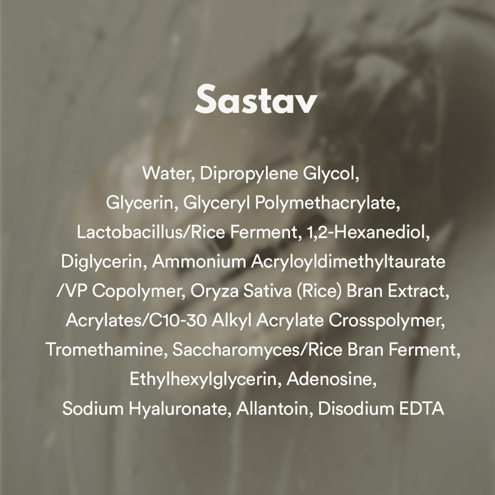 Water, Dipropylene Glycol, Glycerin, Glyceryl Polymethacrylate, Lactobacillus/Rice Ferment, 1,2-Hexanediol, Diglycerin, Ammonium Acryloyldimethyltaurate/VP Copolymer, Oryza Sativa (Rice) Bran Extract, Acrylates/C10-30