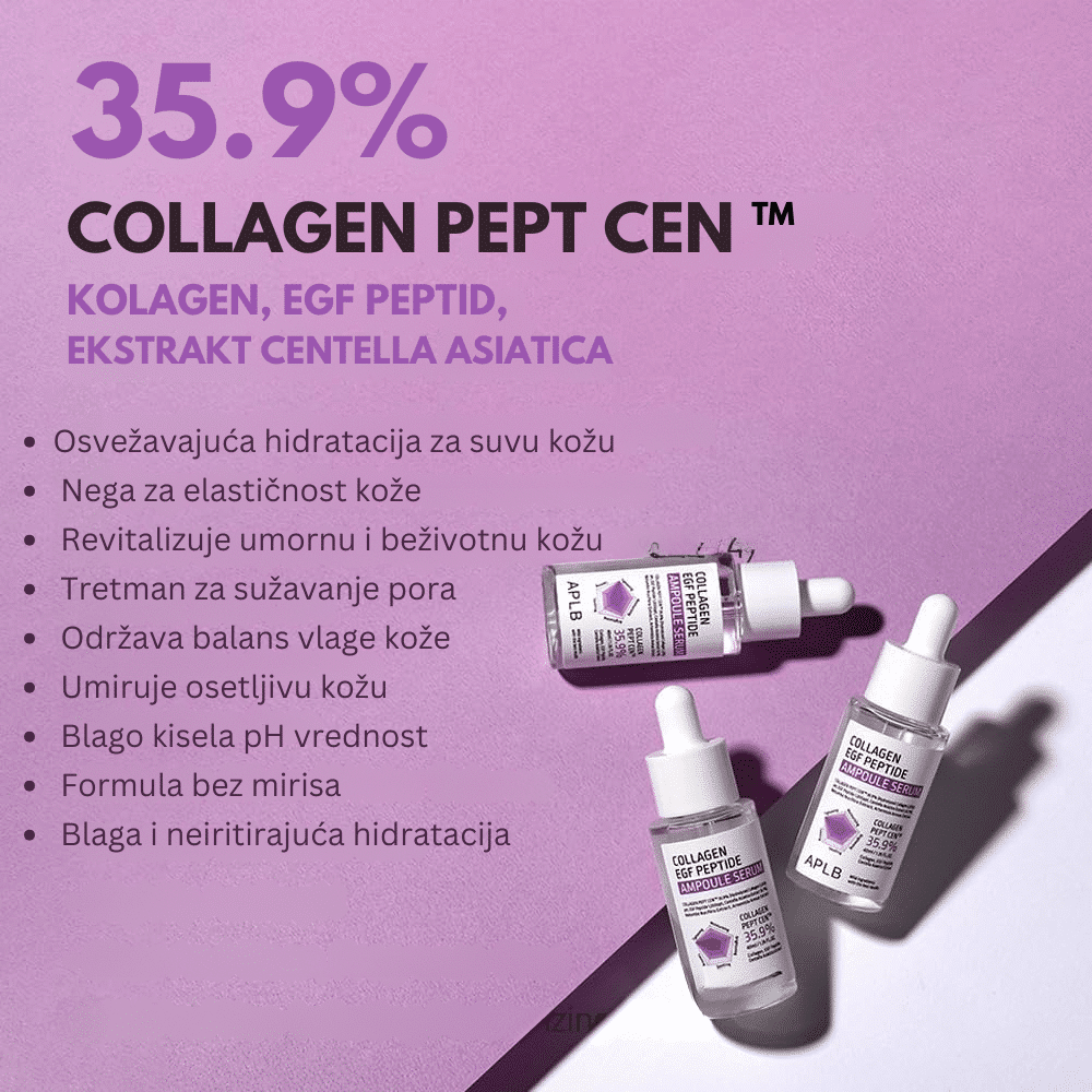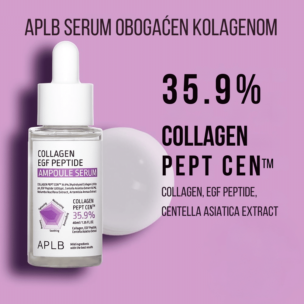APLB Collagen EGF Peptide Ampoule Serum 40ml je visokokoncentrisani serum obogaćen kolagenom, EGF (epidermal grow factor) i peptidima, dizajniran za obnavljanje, regeneraciju i podmlađivanje kože.
