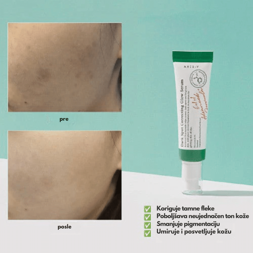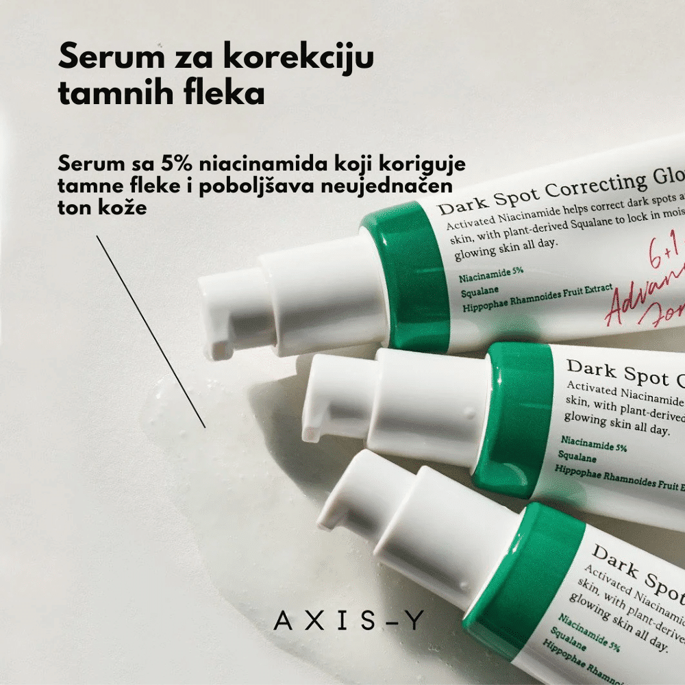 AXIS-Y Dark Spot Correcting Glow Serum 50ml je visokoefikasan serum namenjen smanjenju tamnih mrlja, ujednačavanju tena i postizanju blistavog, zdravog izgleda kože. Sa ključnim sastojkom 5% niacinamida, serum cilja hiperpigmentaciju, fleke od sunca, akni i neujednačen ton kože, istovremeno poboljšavajući elastičnost i teksturu.