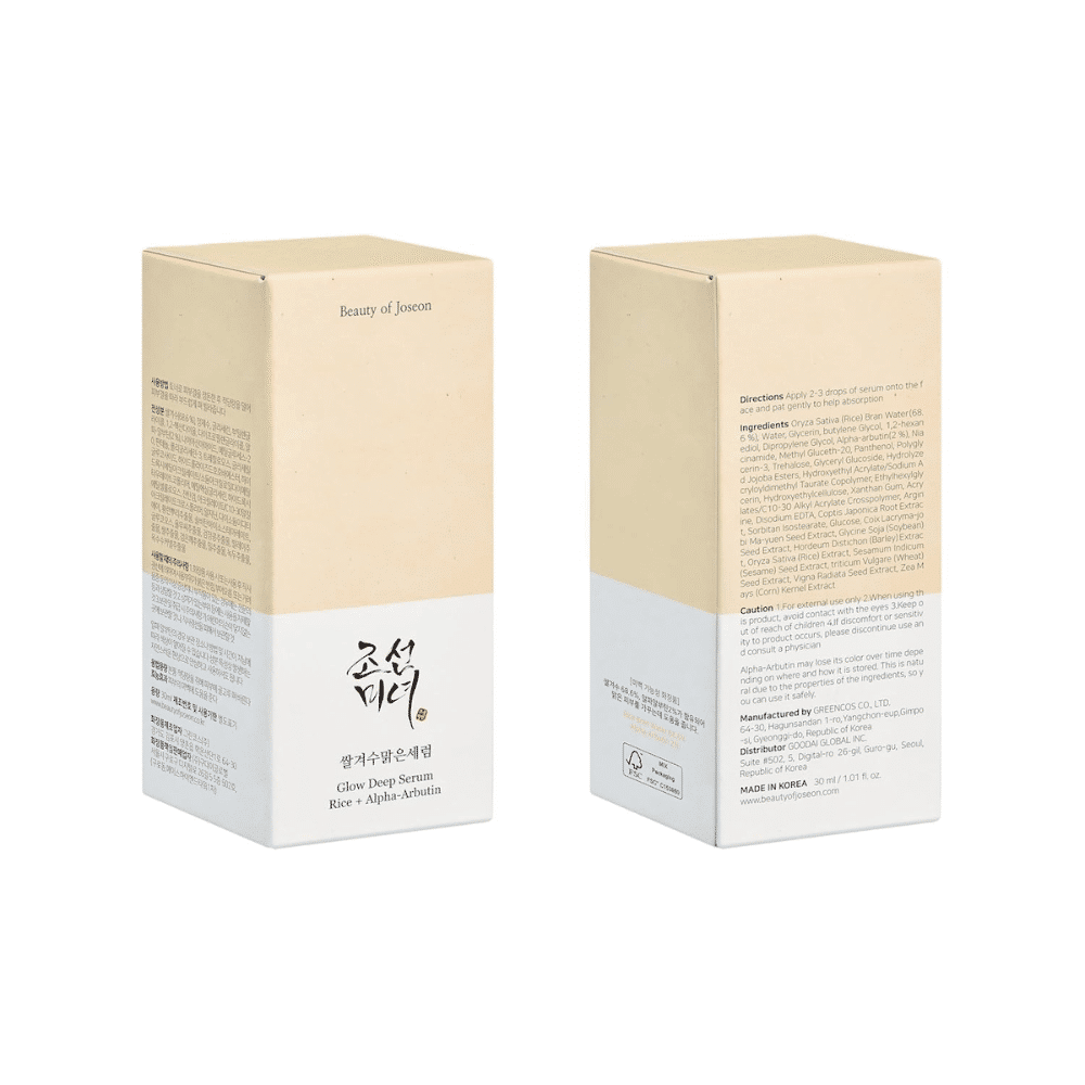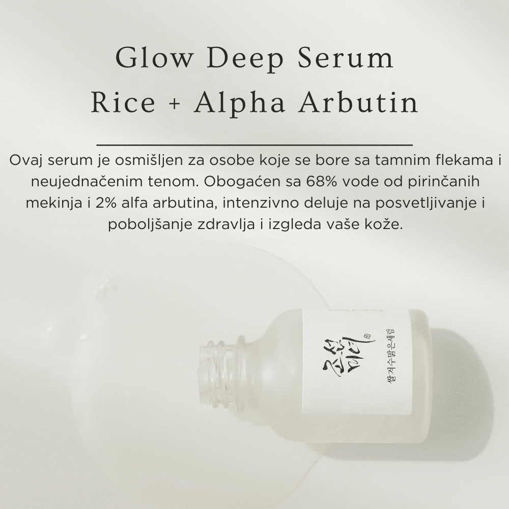 Beauty of Joseon Glow Deep Serum: Rice + Alpha Arbutin 30ml je snažan serum koji kombinuje ekstrakt pirinča i alfa arbutin za poboljšanje tonusa kože, smanjenje tamnih mrlja i postizanje prirodnog sjaja. Pirinčani ekstrakt je bogat vitaminima i minerala koji hidrira kožu, smanjuje suvoću i pomaže u obnavljanju kože i utiču na posvetljivanje tena. , dok alfa arbutin smanjuje pojavu hiperpigmentacije, tamnih mrlja i neujednačenog tenatako što efikasno inhibira proizvodnju melanina. Ovaj serum je idealan za kožu koja je sklona mrljama od akni, sunčanim opekotinama ili starosnim tačkama, jer pomaže u ujednačavanju tona i poboljšava prirodni sjaj kože. Laka, brzo upijajuća formula ne ostavlja lepljivi trag, ostavljajući kožu glatkom, hidratizovanom i zdravog izgleda.