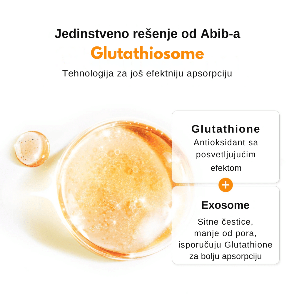 Abib Glutathiosome Dark Spot Serum Vita Drop je visokoefikasan serum za posvetljivanje i ujednačavanje tena, posebno formulisan za borbu protiv tamnih fleka i neujednačenosti kože. Ovaj serum sadrži Glutathiosome, snažni antioksidans koji pomaže u osvetljavanju kože, smanjenju hiperpigmentacija i zaštiti kože od štetnih uticaja slobodnih radikala. Vitamin C dodatno pojačava efekat posvetljavanja, dok hijaluronska kiselina dubinski hidrira i revitalizuje kožu. Lagana tekstura se brzo apsorbuje, čineći ga idealnim za sve tipove kože. Redovnom upotrebom, koža postaje blistava, glatka i ujednačena. Klinička ispitivanja su pokazala sledeće rezultate: Poboljšanje površinske hiperpigmentacije (tamne mrlje na površini kože) je iznosilo 1,88% nakon 3 dana korišćenja, odnosno 2,6% nakon 4 nedelja korišćenja. Rezultati kod poboljšanje dubinske hiperpigmentacije su iznosili 5,86% nakon 3 dana korišćenja, odnosno 14,99% nakone 4 nedelje korišćenja. Proizvod je formulisan bez parabena, sulfata i alkohola, kao i dodatih parfema.