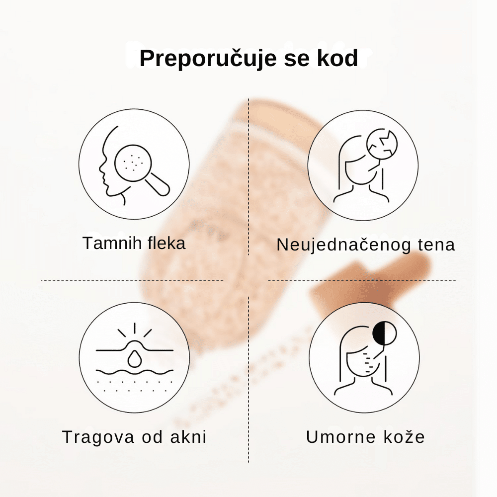 Nanesite 2-3 kapi seruma na čisto lice nakon toniranja. Lagano umasirajte dok se u potpunosti ne apsorbuje. Koristite ujutru i uveče. U jutarnjoj rutini obavezno nanesite SPF nakon seruma kako biste zaštitili kožu od UV zračenja. Izbegavajte kontakt sa očima. Ako se pojavi iritacija, prekinite upotrebu i konsultujte se sa dermatologom.