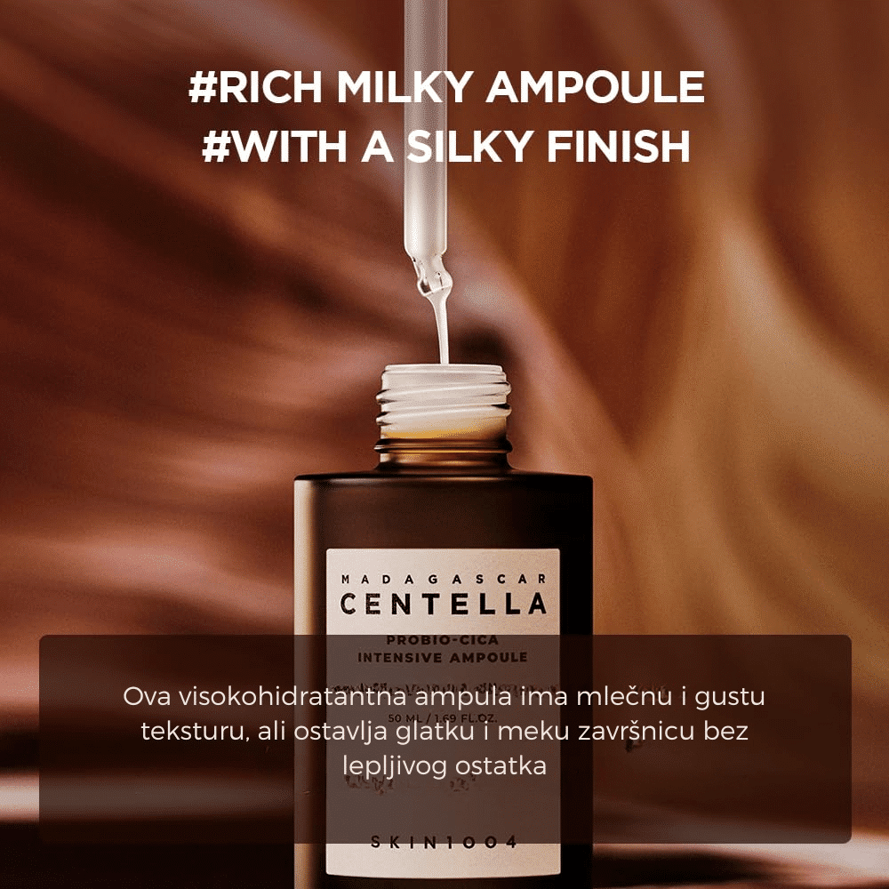 SKIN1004 Madagascar Centella Probio-Cica Intensive Ampoule je napredni serum koji pruža intenzivnu negu, umiruje iritacije i dubinski hidrira kožu. Formulisan sa visokim sadržajem fermentisanog ekstrakta Centella Asiatica, poznatog po regenerativnim i umirujućim svojstvima, ovaj serum pomaže u obnavljanju oštećene kožne barijere, čineći kožu otpornijom na spoljašnje uticaje.