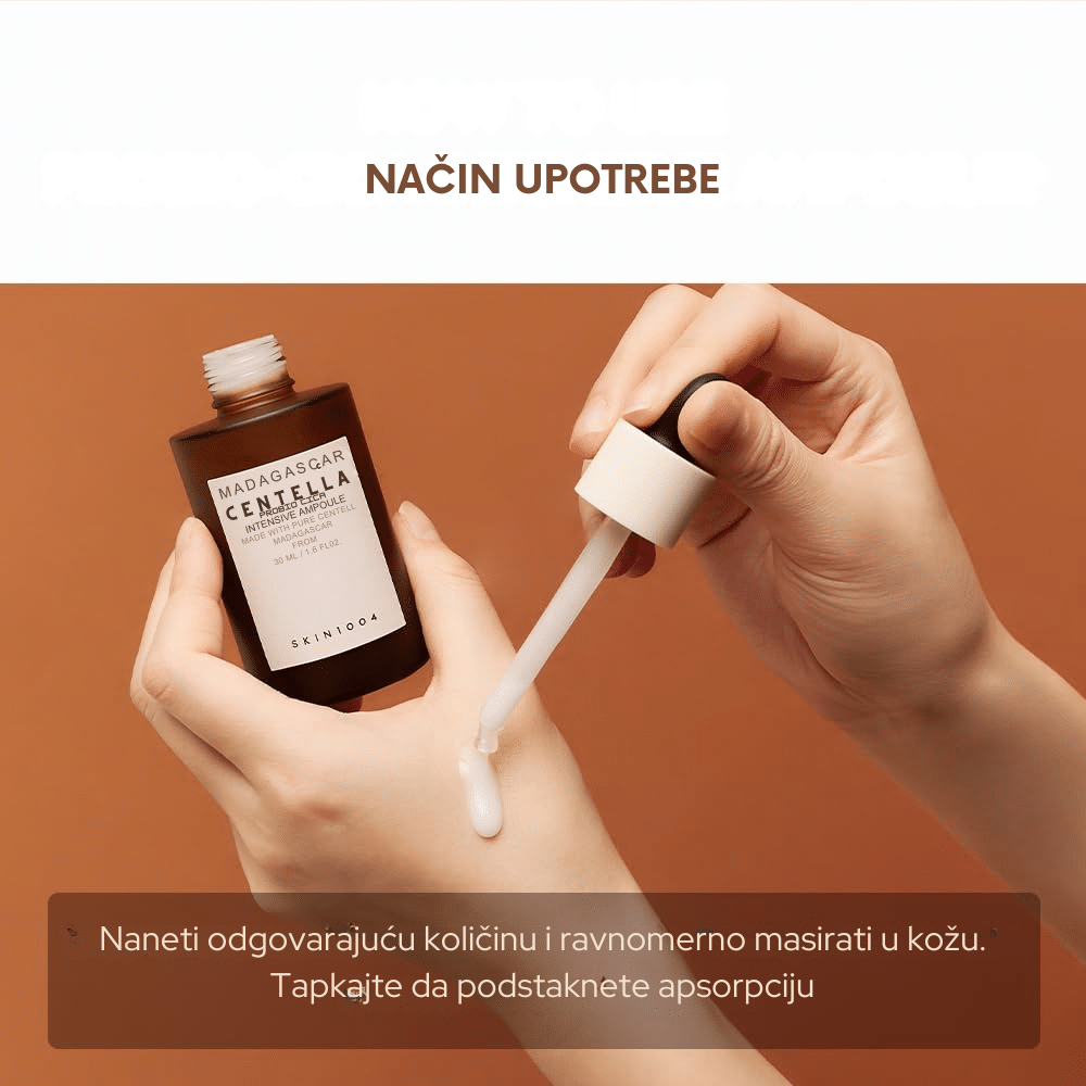 Nakon čišćenja i toniranja, nanesite nekoliko kapi seruma na lice. Nežno utapkajte prstima dok se potpuno ne upije. Koristite ujutru i uveče kao deo vaše redovne rutine nege kože. Izbegavajte direktan kontakt s očima. U slučaju iritacije, prekinite upotrebu i konsultujte se sa dermatologom.