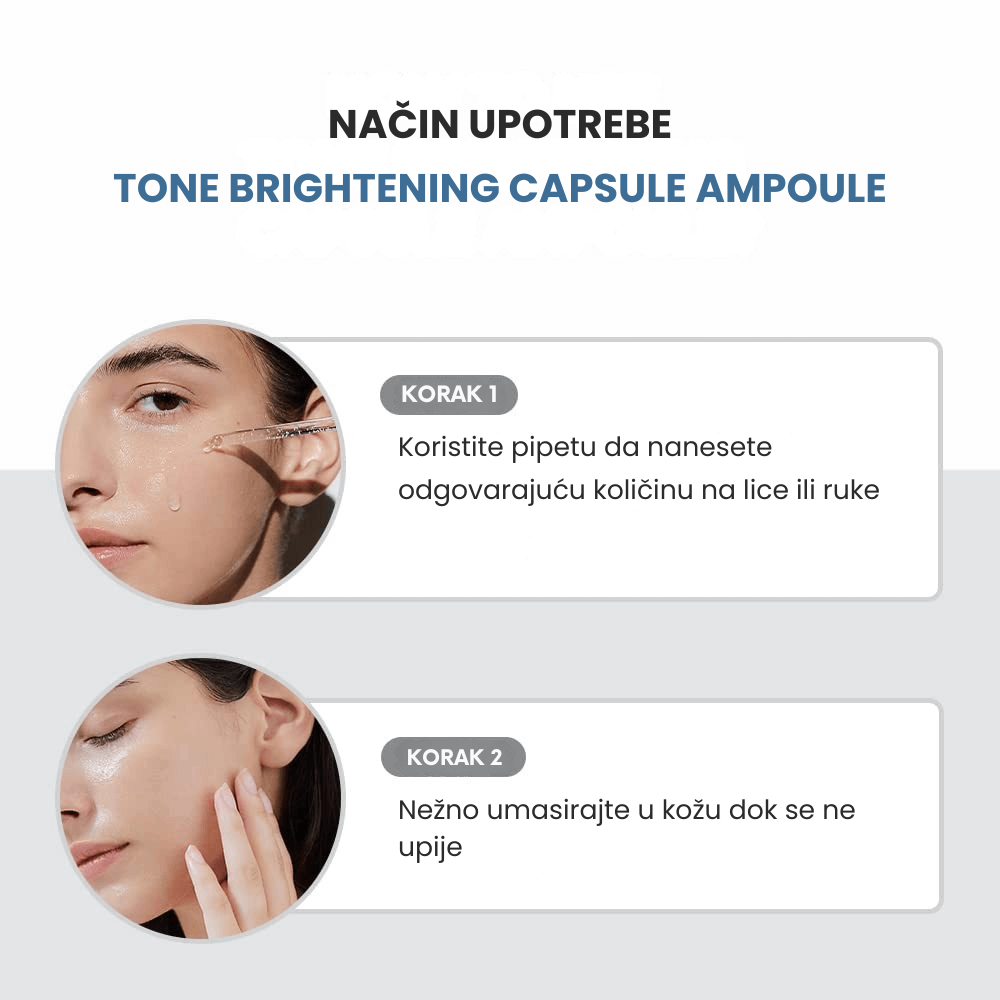Nakon čišćenja i toniziranja, nanesite nekoliko kapi ampule na lice i nežno umasirajte dok se potpuno ne upije. Može se koristiti ujutru i uveče pre kreme ili ulja. Preporučuje se svakodnevna upotreba za optimalne rezultate. Izbegavajte direktan kontakt sa očima. U slučaju iritacije, prekinite upotrebu i posavetujte se sa dermatologom. Ne koristiti zajedno sa proizvodima koji sadrže visoke koncentracije AHA/BHA bez konsultacije sa stručnjakom.