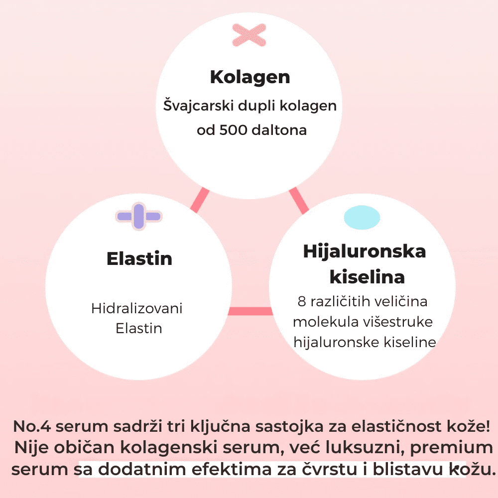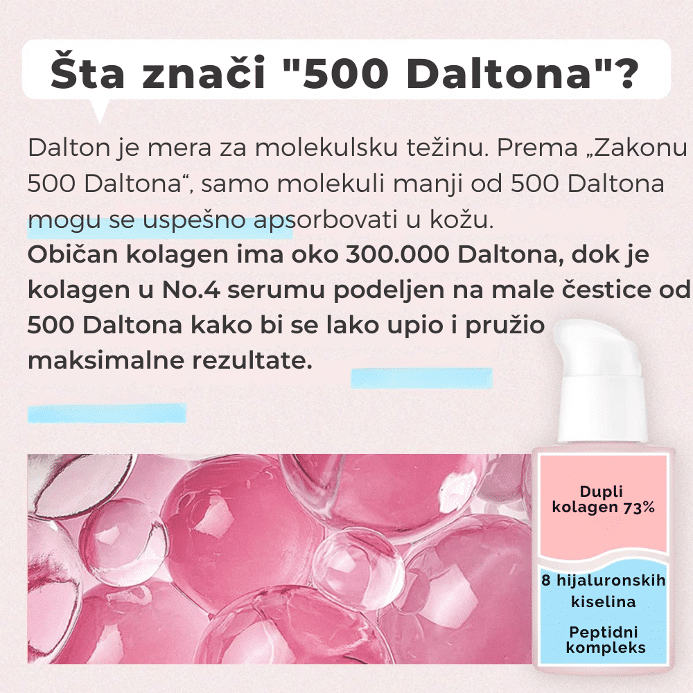 Serum sa 73% kolagena koji hidrira, učvršćuje i obnavlja kožu, smanjuje fine linije i vraća elastičnost, ostavljajući je glatkom i revitalizovanom.