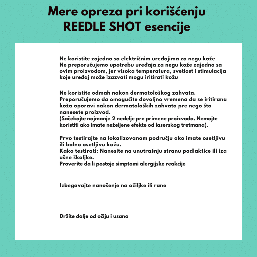 Testirajte: Pre prve upotrebe, testirajte proizvod na maloj površini kože kako biste izbegli iritacije.