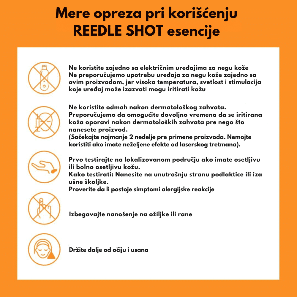 Reedle Shot 700 nije invazivan, ali pruža rezultate slične profesionalnim tretmanima, pomažući u obnavljanju elastičnosti kože, smanjenju bora i poboljšanju ukupne teksture. Osim toga, sadrži niacinamid, koji ujednačava ten i smanjuje tamne fleke, dok hijaluronska kiselina dubinski hidrira kožu. Idealan je za zrelu, suvu ili umornu kožu koja traži intenzivnu negu i regeneraciju.