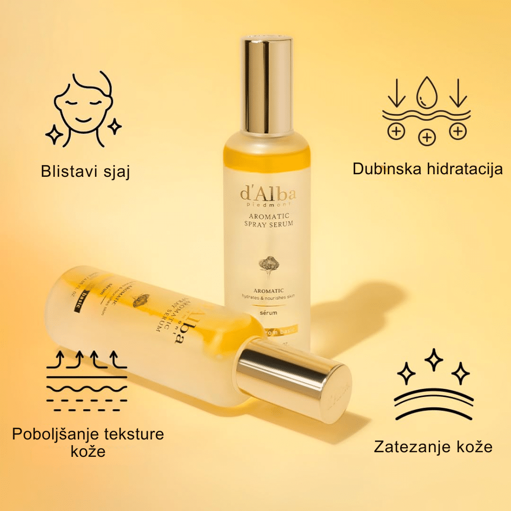 d’Alba White Truffle First Spray Serum 50ml je luksuzni, veganski serum u spreju koji kombinuje moćne sastojke za intenzivnu hidrataciju i revitalizaciju kože. Obogaćen ekstraktom belog tartufa iz Pijemonta, Italija, poznatim po visokim antioksidativnim svojstvima, ovaj serum pruža koži sjaj i elastičnost. Njegova dvoslojna formula, koja se sastoji od seruma i ulja, omogućava trenutnu hidrataciju i blistav finiš. Proizvod je dermatološki testiran i hipoalergen, što ga čini pogodnim za sve tipove kože.