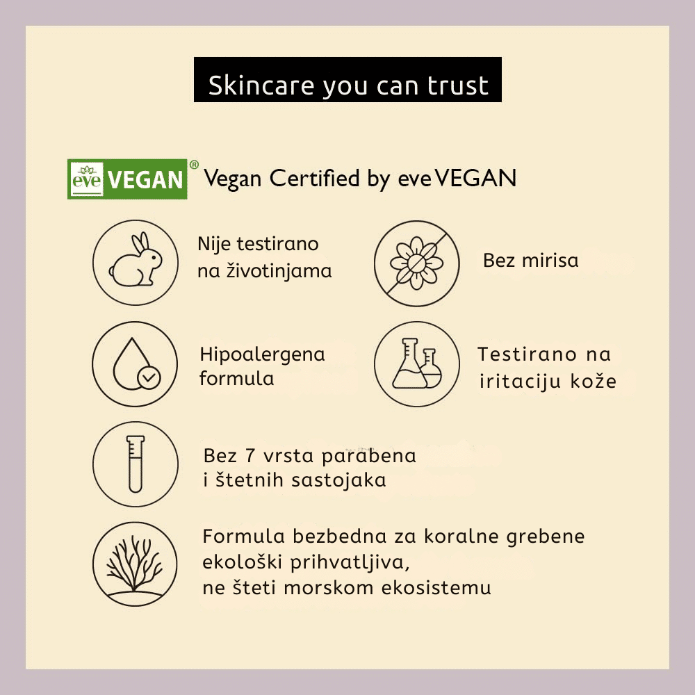 Lagana hemijska krema za sunčanje sa SPF50+ PA++++, obogaćena fermentisanim crnim pirinčem, niacinamidom i ceramidima, pruža hidrataciju, zaštitu i poboljšava elastičnost kože.