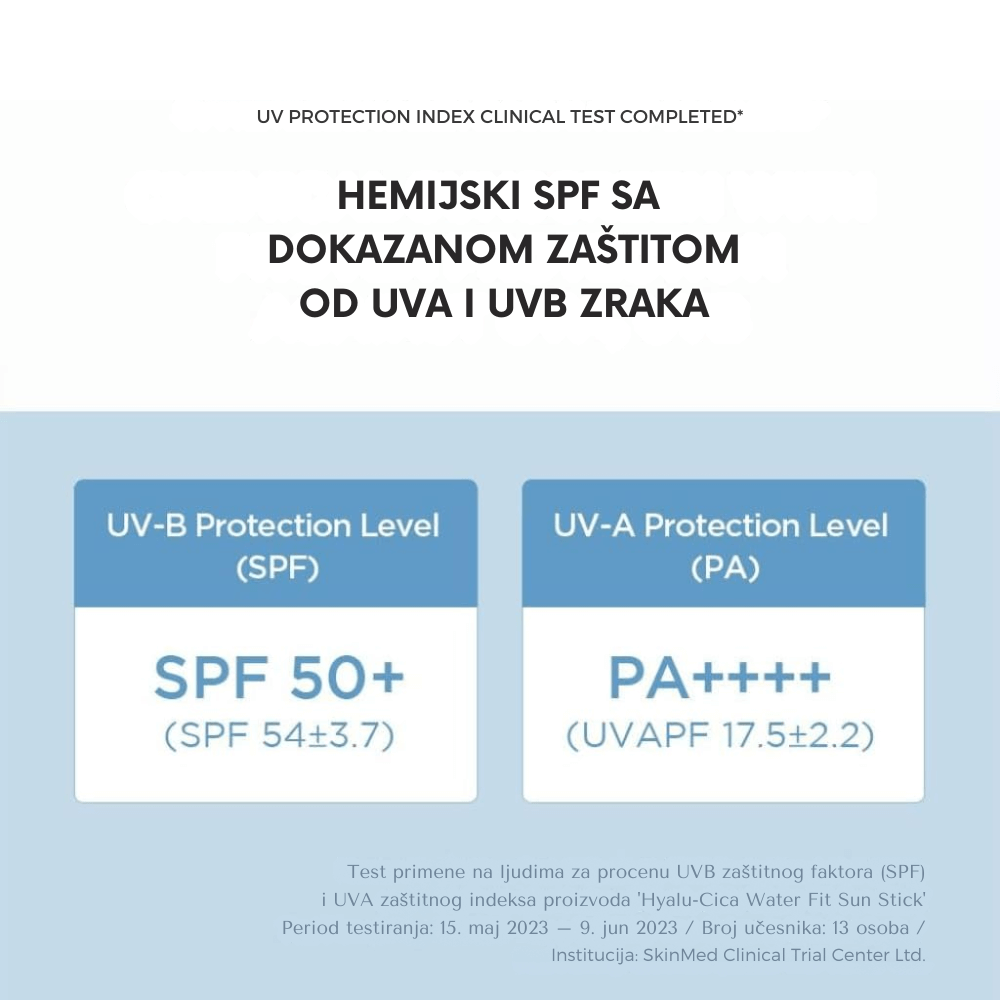 Stik za zaštitu od sunca sa SPF50+ PA++++, hidrira, umiruje i pruža mat završetak bez belih tragova, idealan za sve tipove kože.