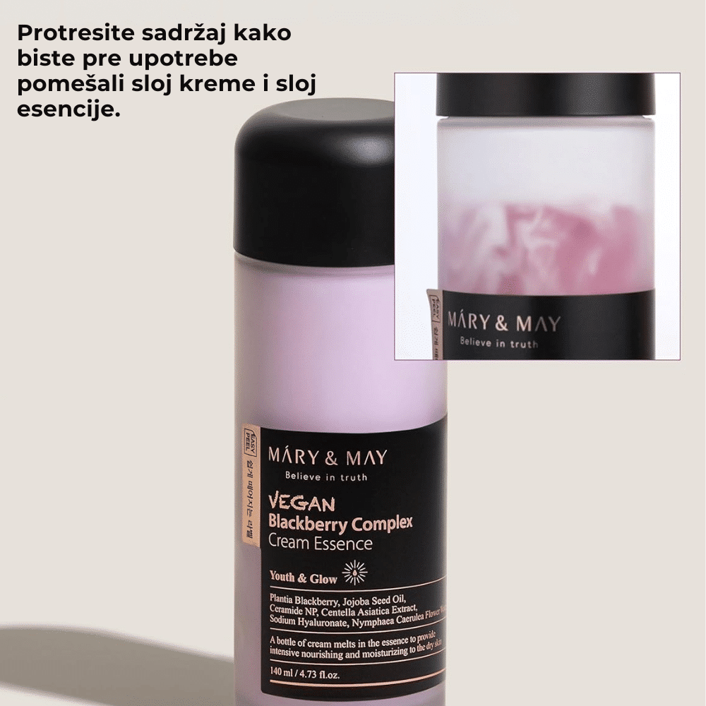 Nanesite odgovarajuću količinu Mary&May Vegan Blackberry Complex Cream Essence na očišćeno lice. Lagano tapkajte dok se esencija potpuno ne upije u kožu. Koristite ujutro i uveče kao deo vaše rutine hidratacije i obnavljanja.