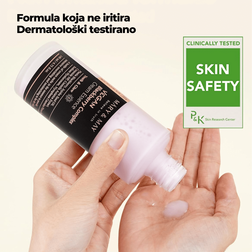 Mary&May Vegan Blackberry Complex Cream Essence 140ml je luksuzna esencija koja kombinuje ekstrakt crnih malina i hijaluronsku kiselinu za intenzivnu hidrataciju, poboljšanje tonusa i smanjenje znakova starenja. Ekstrakt crnih malina je bogat antioksidansima, koji pomažu u zaštiti kože od oksidativnog stresa, smanjuju upale i poboljšavaju elastičnost kože. Hijaluronska kiselina pruža dubinsku hidrataciju, čineći kožu glatkom i mekom, dok niacinamid poboljšava tonus kože, smanjuje crvenilo i smanjuje pojavu pora. Mary&May Vegan Blackberry Complex Cream Essence je idealna za kožu koja je sklona suvoći, dehidrataciji ili osetljivosti, jer poboljšava kožnu barijeru, obnavlja vlagu i ostavlja kožu osveženom i blistavom. Ova esencija je lagane teksture koja se brzo upija, čineći je pogodnom za sve tipove kože, uključujući osetljivu kožu.