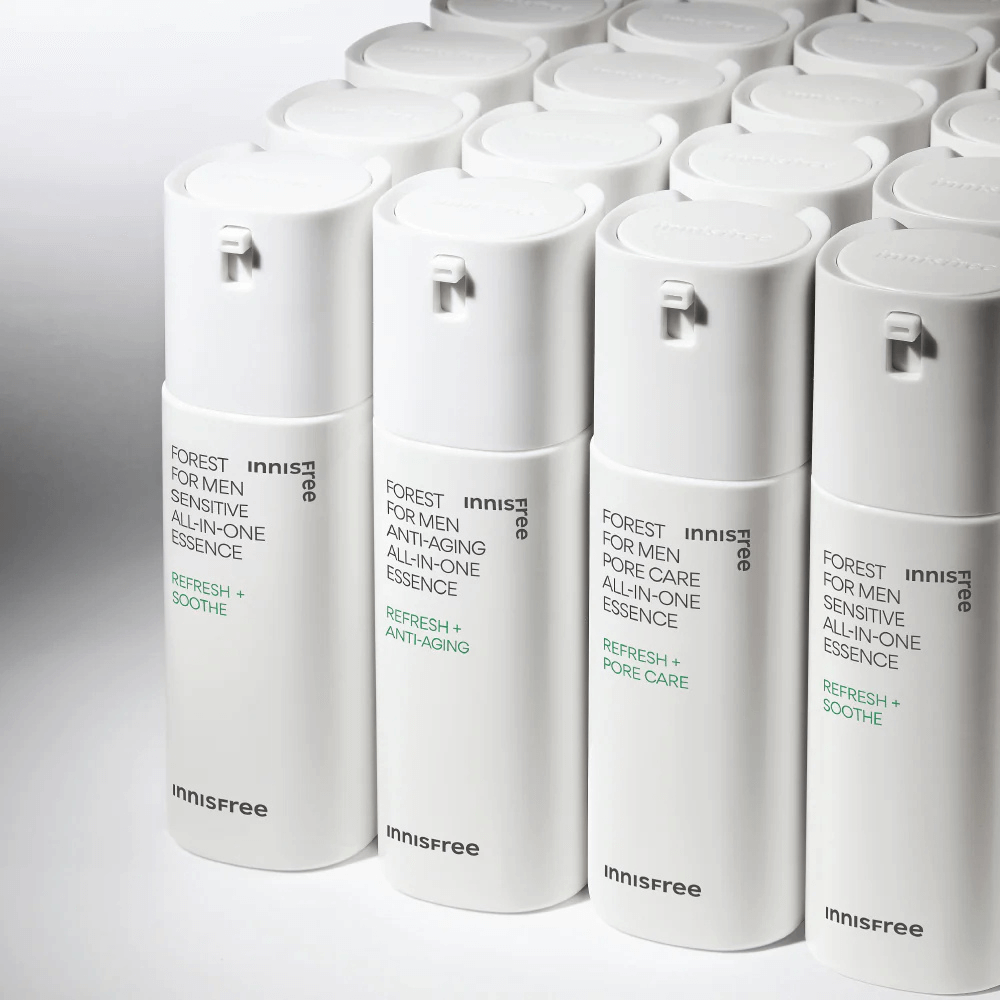 Innisfree Forest For Men Anti-Aging All-In-One Essence je višenamenski proizvod formulisan da zameni tonik, esenciju i losion, pružajući praktičnu i efikasnu negu kože za muškarce. Obogaćen je fermentom Aureobasidium Pullulans, poznatim kao crni kvasac, koji pomaže u jačanju barijere kože i zaštiti od spoljašnjih iritansa. Ekstrakt Centella Asiatica dodatno umiruje kožu i pruža antioksidativnu zaštitu. Niacinamid u sastavu poboljšava teksturu kože, smanjuje vidljivost pora i doprinosi ujednačenom tenu. Ova lagana formula se brzo upija, ostavljajući kožu hidriranom i osveženom bez lepljivog osećaja.
