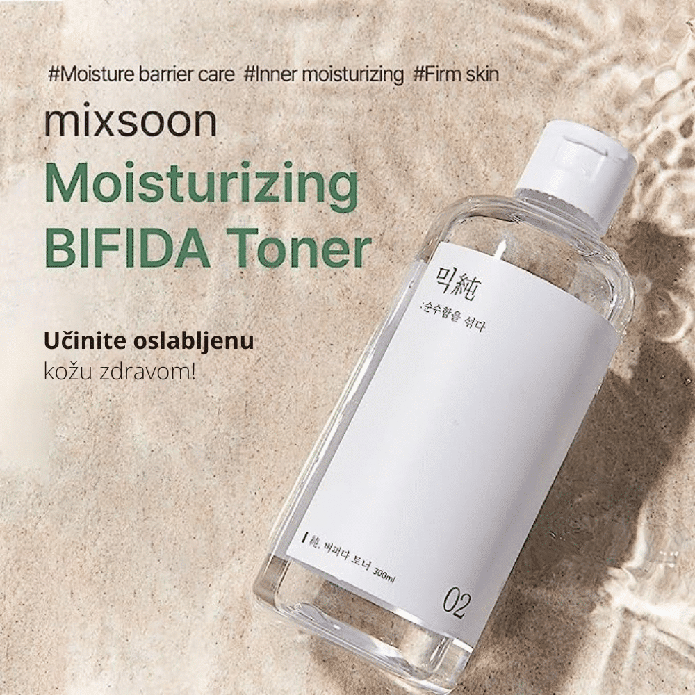 Mixsoon Bifida Toner 150ml je regenerativni toner formulisan sa bifida ferment lysate-om, koji dubinski hidrira, jača kožnu barijeru i obnavlja oštećenu kožu. Ovaj toner pomaže u smanjenju crvenila i iritacija, dok balansira vlažnost kože i vraća joj prirodni sjaj. Njegova lagana, brzo upijajuća formula priprema kožu za bolje upijanje sledećih proizvoda u rutini nege. Idealan za sve tipove kože, uključujući osetljivu i kožu sklonu iritacijama. Mixsoon Bifida Toner je clean, vegan i cruelty-free proizvod, savršen za svakodnevnu upotrebu.