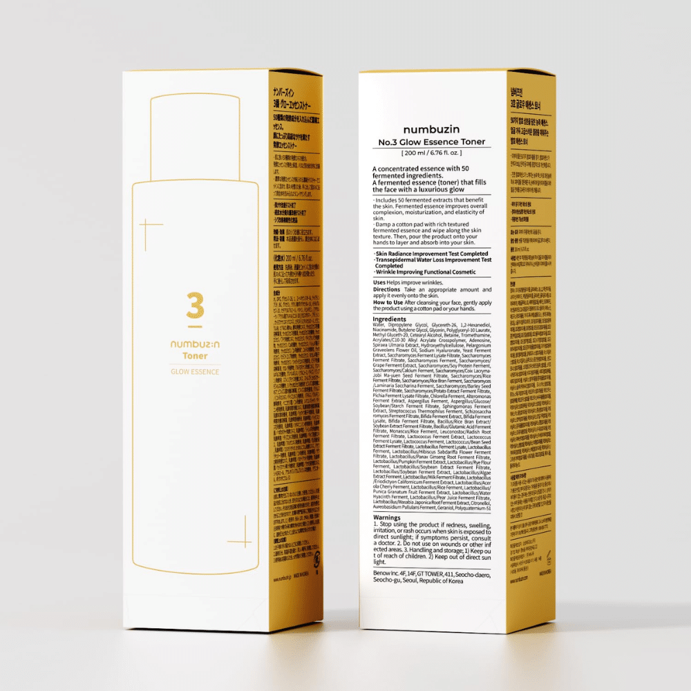 Numbuzin No.3 Super Glowing Essence Toner je tonik bogat sa 50 različitih fermentisanih sastojaka koji poboljšavaju elastičnost kože, vraćaju joj sjaj i unapređuju ukupnu teksturu. Klinički je dokazano da povećava blistavost kože za 52,8%, smanjuje veličinu pora i reguliše proizvodnju sebuma.
