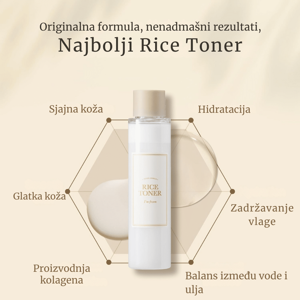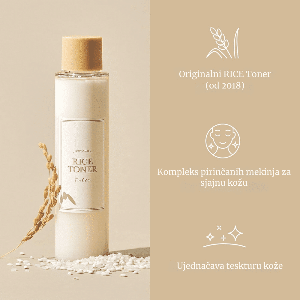 I’m From Rice Toner 150ml je hidratantni i posvetljujući tonik za lice koji sadrži čak 77,78% ekstrakta pirinča iz Yeoju provincije u Koreji, poznate po visoko kvalitetnom organskom pirinču. Ovaj tonik dubinski hidrira kožu, poboljšava njenu elastičnost i pruža blistav, svež izgled. Ekstrakt pirinča bogat je vitaminima B i E, mineralima i antioksidansima koji neguju kožu, smanjuju crvenilo i ujednačavaju ten. Njegova lagana tekstura omogućava brzo upijanje bez lepljivog osećaja, ostavljajući kožu glatkom, hidriranom i umirenom.