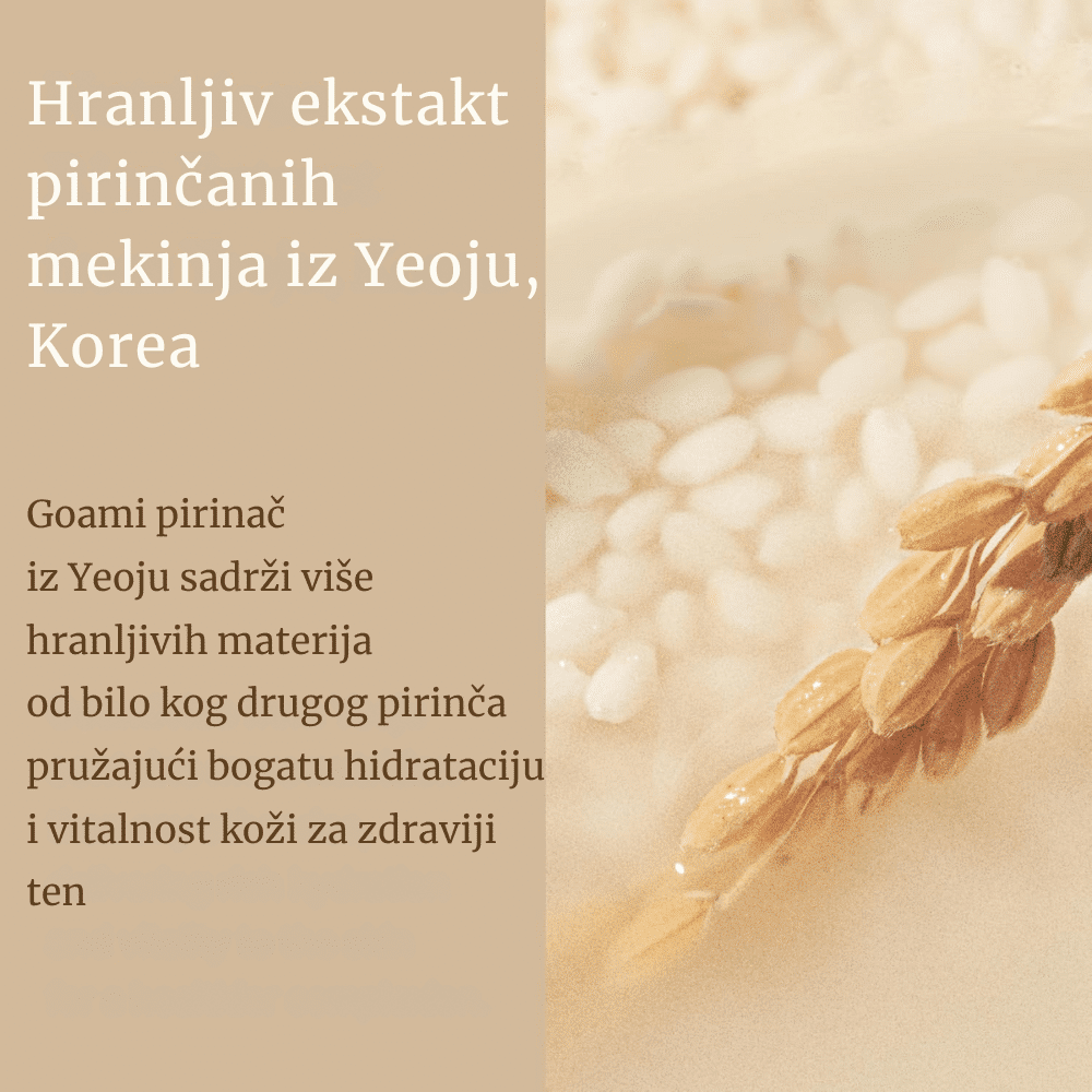 Tonik sa 77,78% ekstrakta pirinča hidrira, posvetljuje i poboljšava elastičnost kože, balansira vlagu i ulje, pružajući glatku i blistavu kožu.