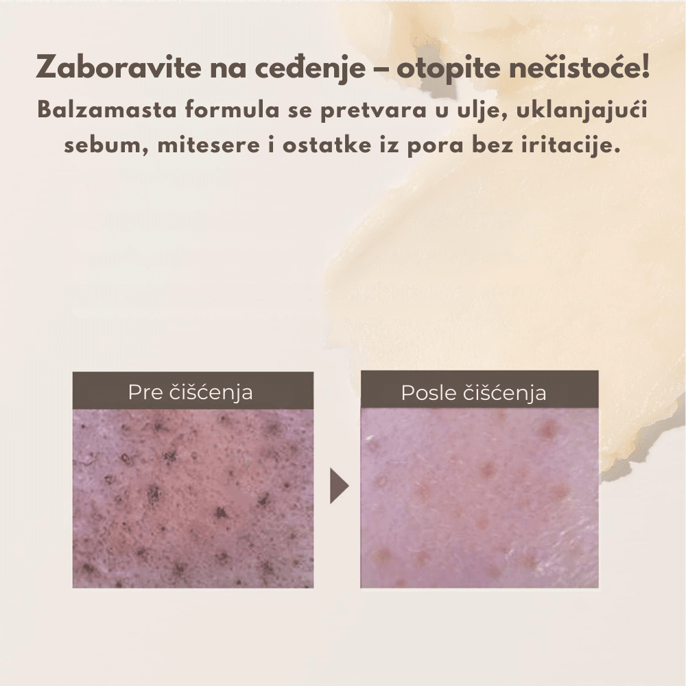 Balzam za čišćenje sa ekstraktom mandarine koji efikasno uklanja šminku i prljavštinu, dok hidrira i osvežava kožu, ostavljajući je glatkom i blistavom.