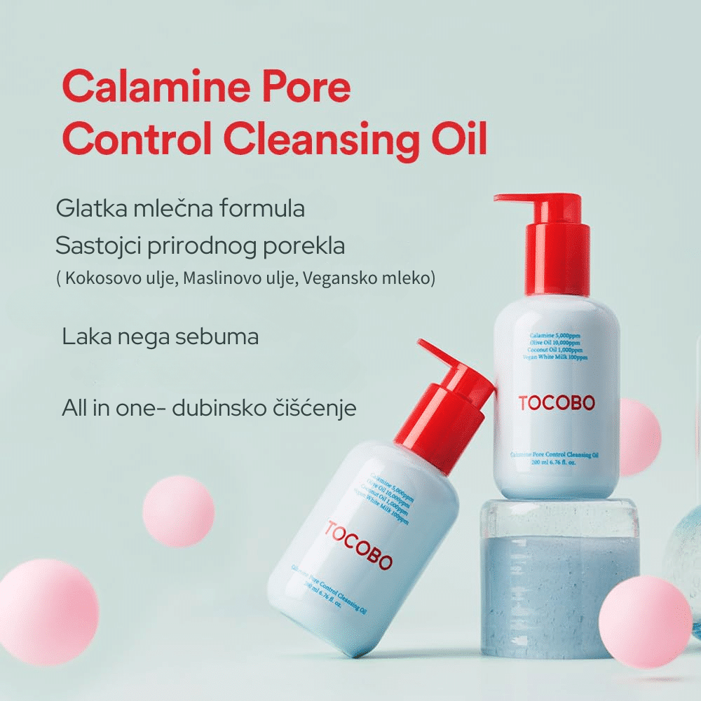TOCOBO Calamine Pore Control Cleansing Oil dubinski čisti pore, uklanja šminku i balansira sebum uz umirujući efekat kalamina. Idealan za masnu i kombinovanu kožu.