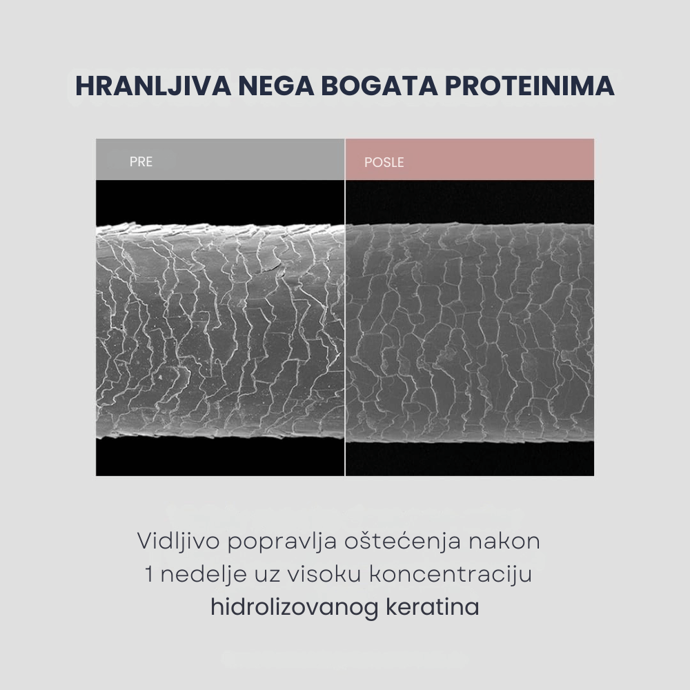 UNOVE Deep Damage Repair Shampoo 500ml je blagi šampon namenjen dubinskoj obnovi suve i oštećene kose. Formulisan sa 30 različitih proteina i aminokiselina, ovaj šampon intenzivno hrani kosu, jača kutikulu i smanjuje lomljenje i ispucale krajeve. Blago kisela pH vrednost pomaže u održavanju balansa vlage i ulja na temenu, dok biljna ulja poput ulja kamelije, masline, argana, makadamije i suncokreta pružaju dodatnu hidrataciju i sjaj.