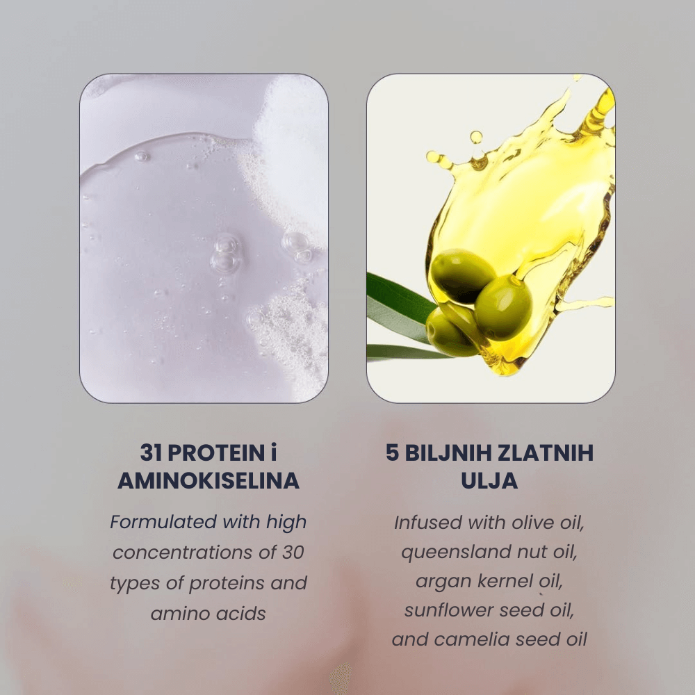 Arganovo ulje – Zlato za kosu bogato esencijalnim masnim kiselinama, vitaminom E i antioksidansima! Intenzivno hrani, hidrira i jača kosu, smanjuje lomljenje i ispucale krajeve, dok istovremeno pruža zaštitu od toplote i spoljašnjih oštećenja. Ostavlja kosu mekom, sjajnom i svilenkastom, bez osećaja težine.