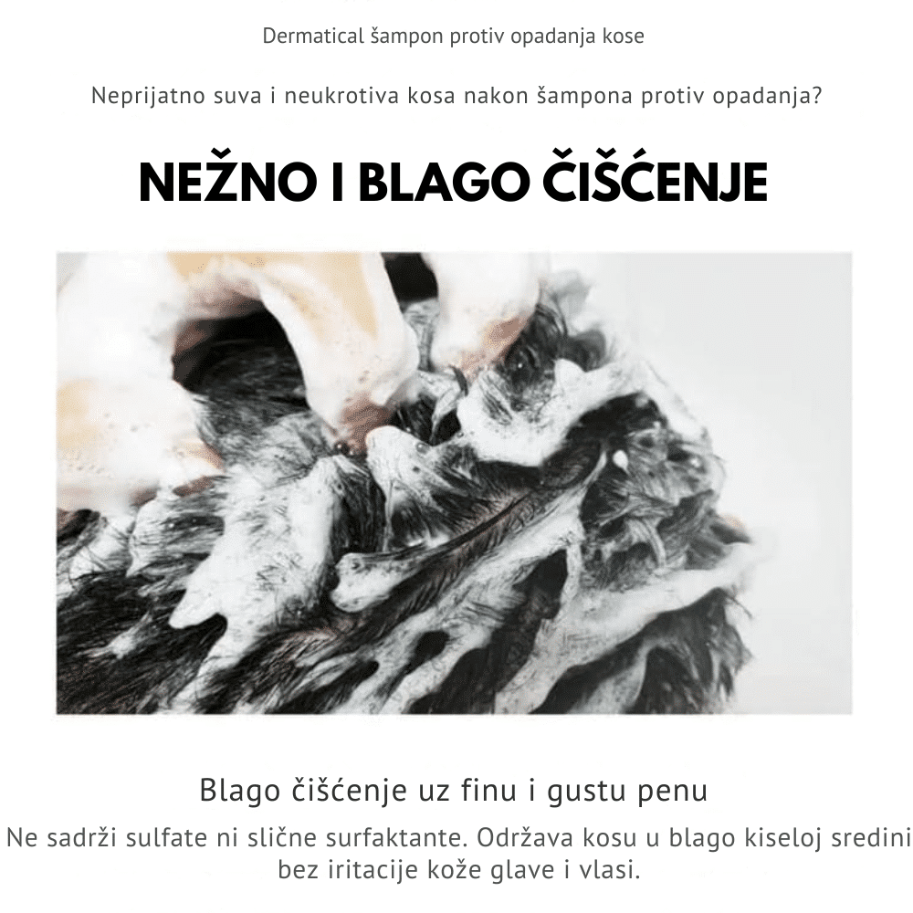 Jača tanku kosu, smanjuje opadanje i obnavlja vlasište uz aminokiseline, biljne ekstrakte i salicilnu kiselinu, bez sulfata i parabena.