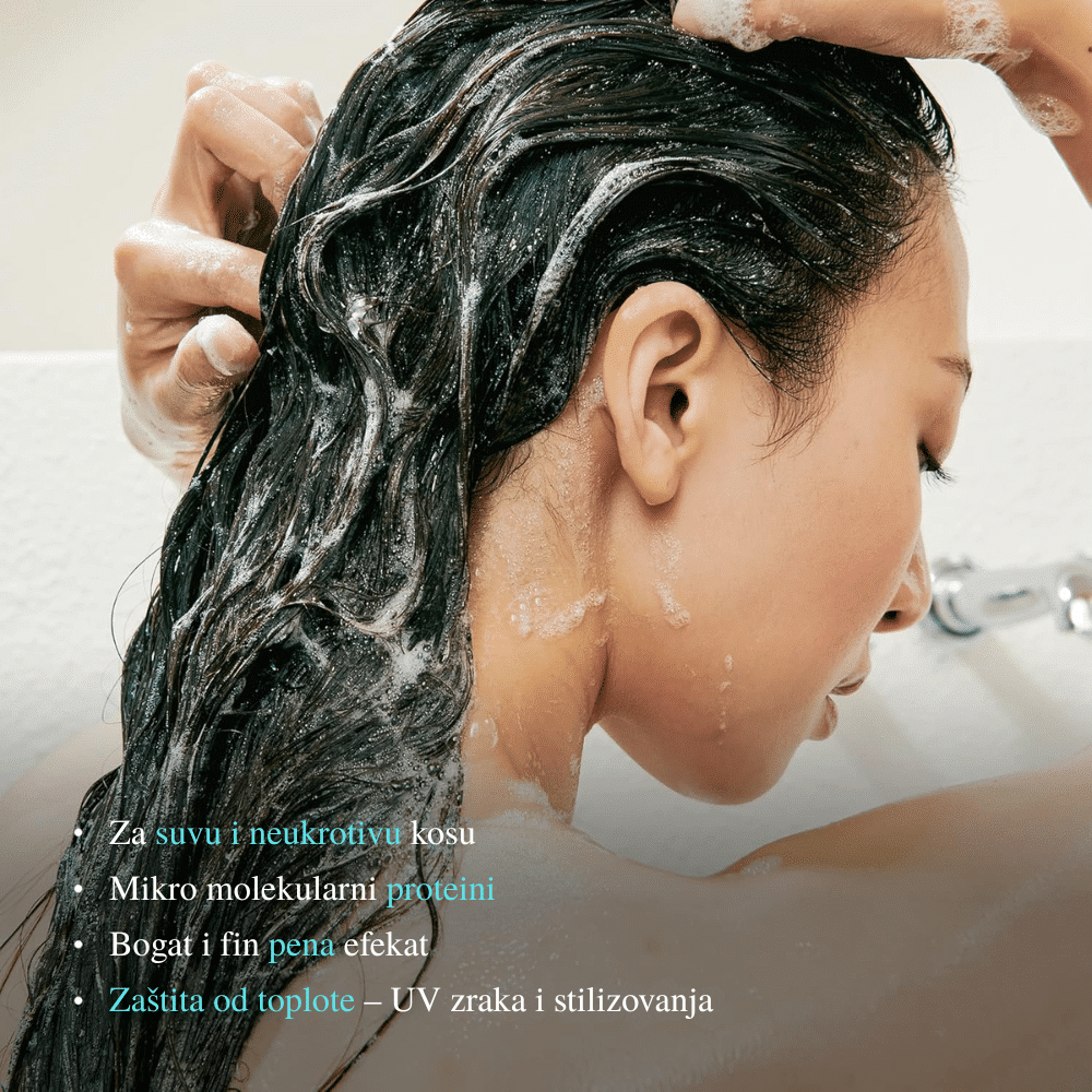 Šampon koji dubinski obnavlja oštećenu kosu, pruža hidrataciju i sjaj, čineći je mekom, elastičnom i otpornom na lomljenje.