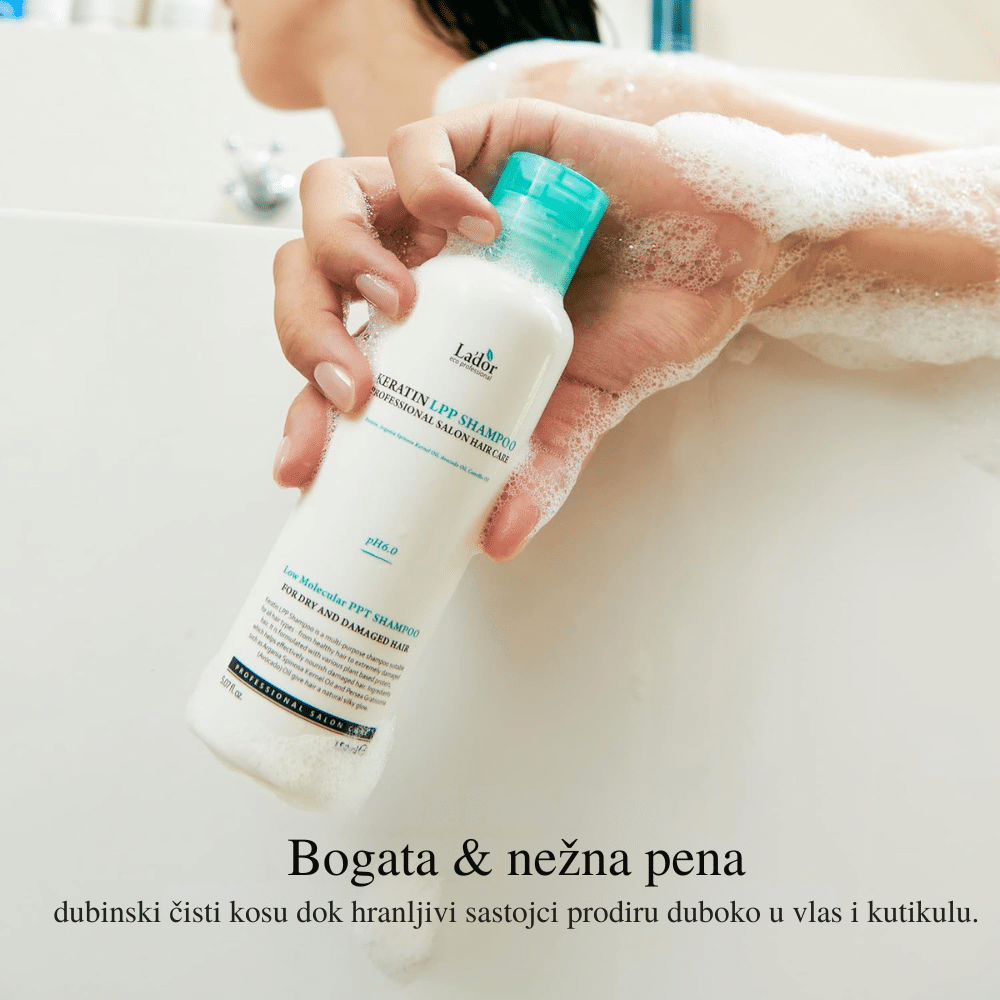 Lador Keratin LPP Shampoo 530ml je profesionalni šampon koji pruža dubinsku negu suvoj, oštećenoj i hemijski tretiranoj kosi. Formulisan sa niskomolekularnim proteinima (LPP), ovaj šampon efikasno obnavlja strukturu vlasi, vraćajući im elastičnost i sjaj. Obogaćen hidrolizovanim keratinom, svilenim proteinima i biljnim uljima poput arganovog, avokadovog, kamelijinog i jojobinog, pruža intenzivnu hidrataciju i jača kosu od korena do vrhova. Njegova blago kisela pH vrednost od 5.5 pomaže u održavanju zdrave ravnoteže vlasišta, čineći ga pogodnim za svakodnevnu upotrebu i osetljivo vlasište.