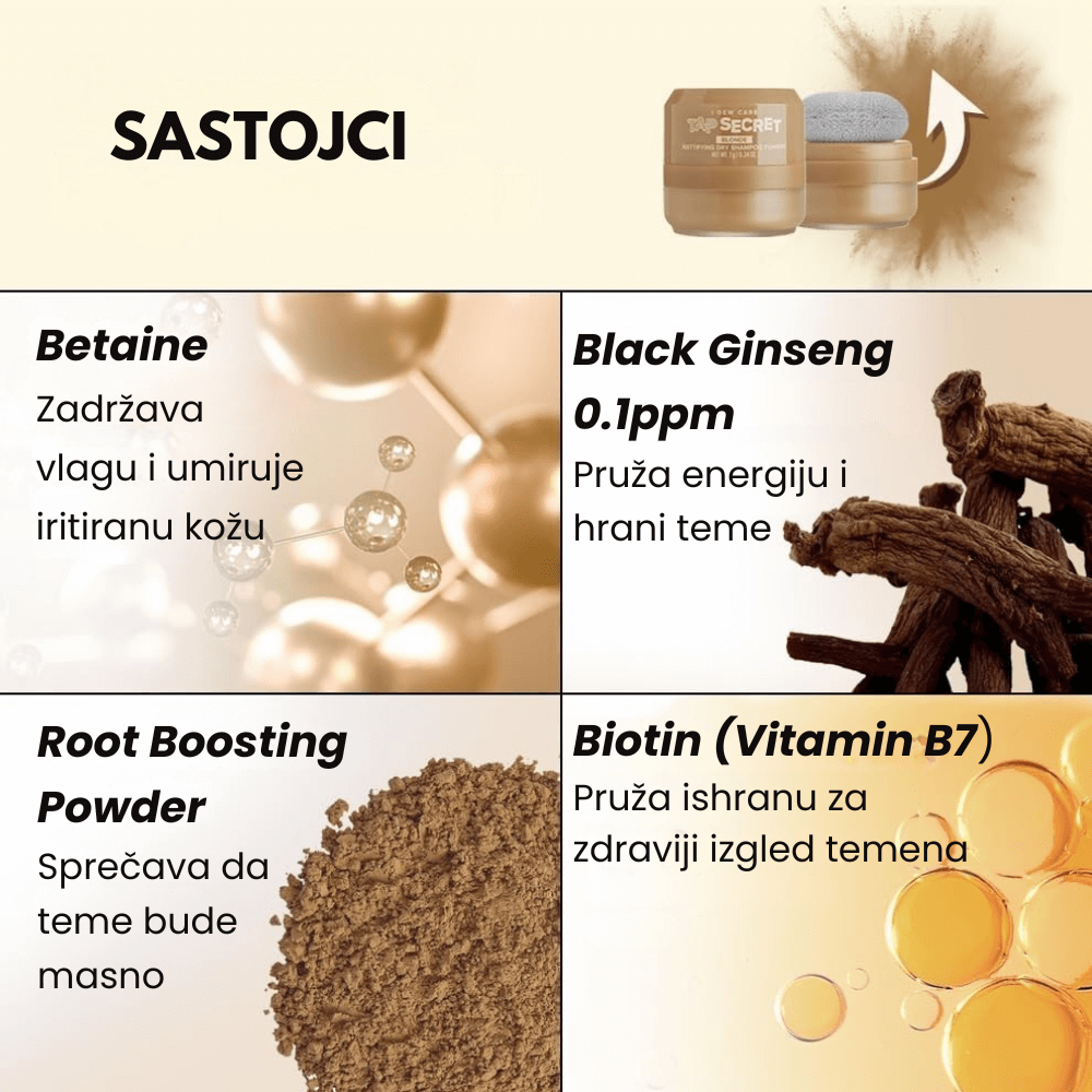 I DEW CARE Tap Secret Mattifying Dry Shampoo Powder Blonde 7g je suvi šampon u prahu koji trenutno osvežava kosu, upija višak masnoće i pruža mat završnicu bez belih tragova. Formulisan posebno za osobe sa plavom kosom, ovaj ultra-fini prah savršeno se stapa sa svetlijim nijansama, omogućavajući brzo osveženje između pranja. Obogaćen je ključnim sastojcima poput biotina (vitamin B7), koji hrani teme i podstiče zdrav izgled kose, i crnog ženšena, koji stimuliše i promoviše zdravlje temena. Prah dolazi u kompaktnom i prenosivom pakovanju sa aplikatorom, omogućavajući lako nanošenje i osveženje kose u pokretu. Njegova formula bez aerosola pruža instant volumen i mat efekat, čineći kosu čistom i osveženom tokom celog dana.