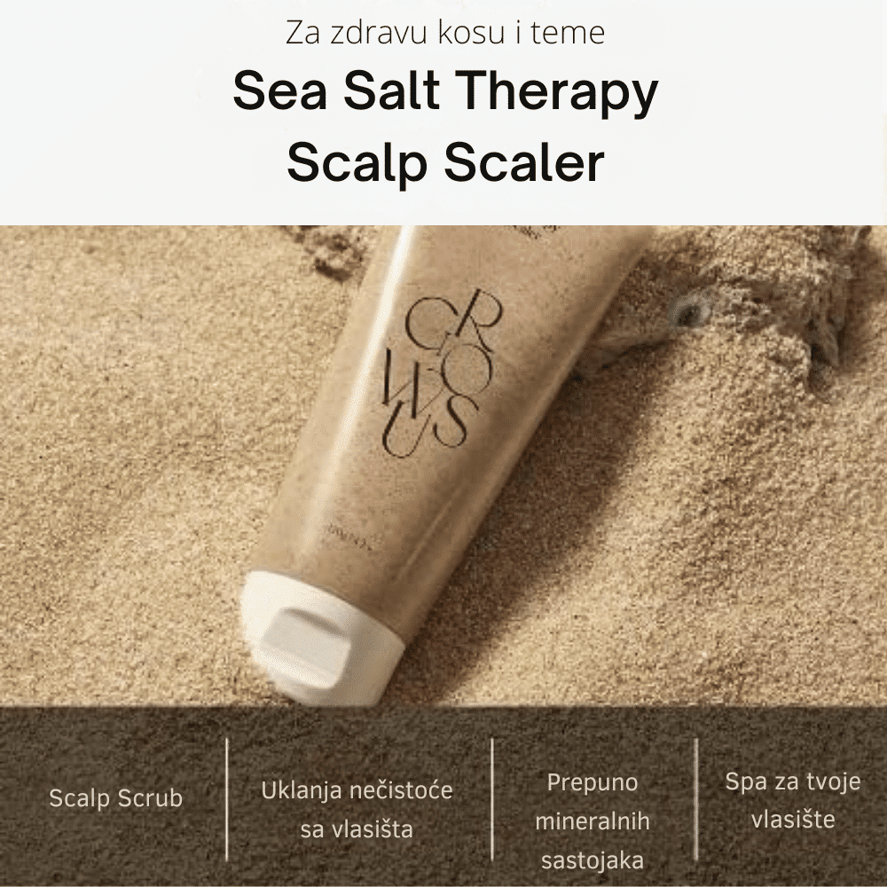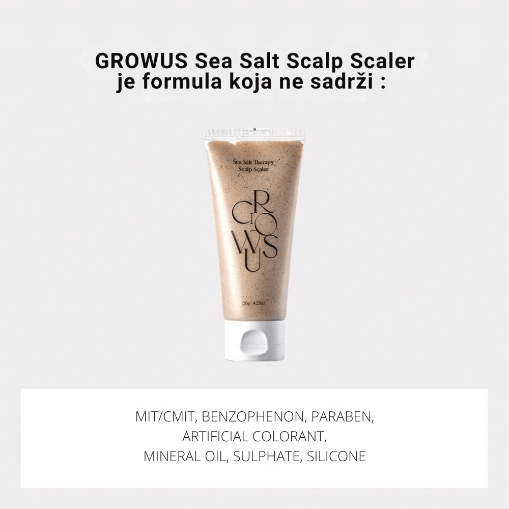 Growus Sea Salt Therapy Scalp Scaler 120g je piling za teme dizajniran da dubinski očisti i revitalizuje kožu glave, pružajući temeljnu negu za zdraviju i jaču kosu. Obogaćen mineralima iz morske soli i morske vode, ovaj proizvod efikasno uklanja višak sebuma, peruti i mrtve ćelije kože, stvarajući optimalno okruženje za rast kose. Njegova jedinstvena formula sadrži 353,840ppm morske soli i 150,000ppm morske vode, bogate mineralima koji pomažu u detoksikaciji i balansiranju vlasišta. Dodatno, kompleks morskih algi pruža intenzivnu hidrataciju i revitalizaciju oštećene i suve kose, dok salicilna kiselina, niacinamid i dekspantenol deluju umirujuće i eksfolijativno, smanjujući iritacije i promovišući zdravlje vlasišta.