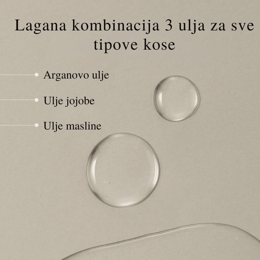 Arganovo ulje – Zlato za kosu bogato esencijalnim masnim kiselinama, vitaminom E i antioksidansima! Intenzivno hrani, hidrira i jača kosu, smanjuje lomljenje i ispucale krajeve, dok istovremeno pruža zaštitu od toplote i spoljašnjih oštećenja. Ostavlja kosu mekom, sjajnom i svilenkastom, bez osećaja težine.