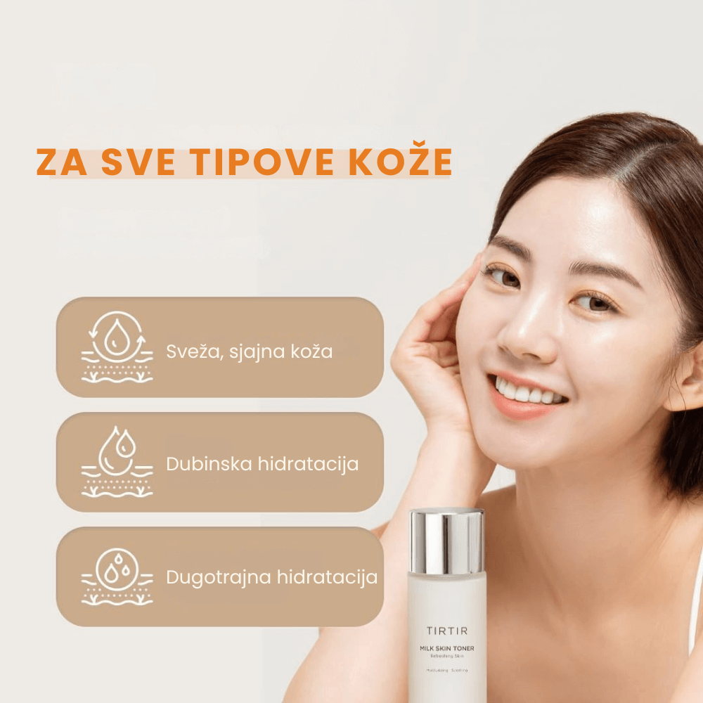 TIRTIR Milk Skin Toner je bogato hidratantni i umirujući tonik koji osvežava i neguje kožu, ostavljajući je mekom i elastičnom. Njegova lagana, mlečna tekstura brzo se upija i pruža intenzivnu hidrataciju bez osećaja lepljivosti. Formula je obogaćena mlečnim proteinima i hijaluronskom kiselinom, koji pomažu u jačanju kožne barijere i obnavljanju vlažnosti, dok niacinamid osvetljava ten i ujednačava teksturu kože. Ovaj tonik je savršen za suvu, dehidriranu i osetljivu kožu, pružajući joj zdrav, blistav izgled.