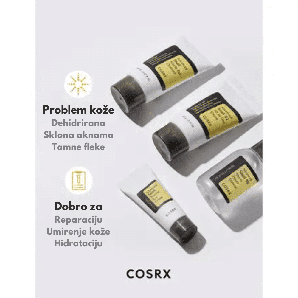 Cosrx je korejski kozmetički brend poznat po svojoj efikasnosti i jednostavnim, ali visokokvalitetnim proizvodima za negu kože. Osnovan 2013. godine, Cosrx je postao popularan zahvaljujući svojoj posvećenosti stvaranju proizvoda koji koriste minimalan broj sastojaka, ali sa maksimalnim učinkom, što ih čini idealnim za osetljivu kožu. Brend nudi širok spektar proizvoda, uključujući serume, tonere, maske i kreme, sa naglaskom na upotrebi sastojaka kao što su AHA, BHA, niacinamid, propolis i drugi biljni ekstrakti. Njihovi proizvodi su veganski, cruelty-free i ne sadrže parabene, sulfate ili veštačke mirise. Cosrx je prepoznat po svojoj jednostavnoj, ali efikasnoj formuli koja pomaže u rešavanju problema sa kožom kao što su akne, suvoća i nepravilnosti. Takođe, brend se ističe svojom posvećenostšću naučnoj i dermatološkoj istraživačkoj osnovi.
